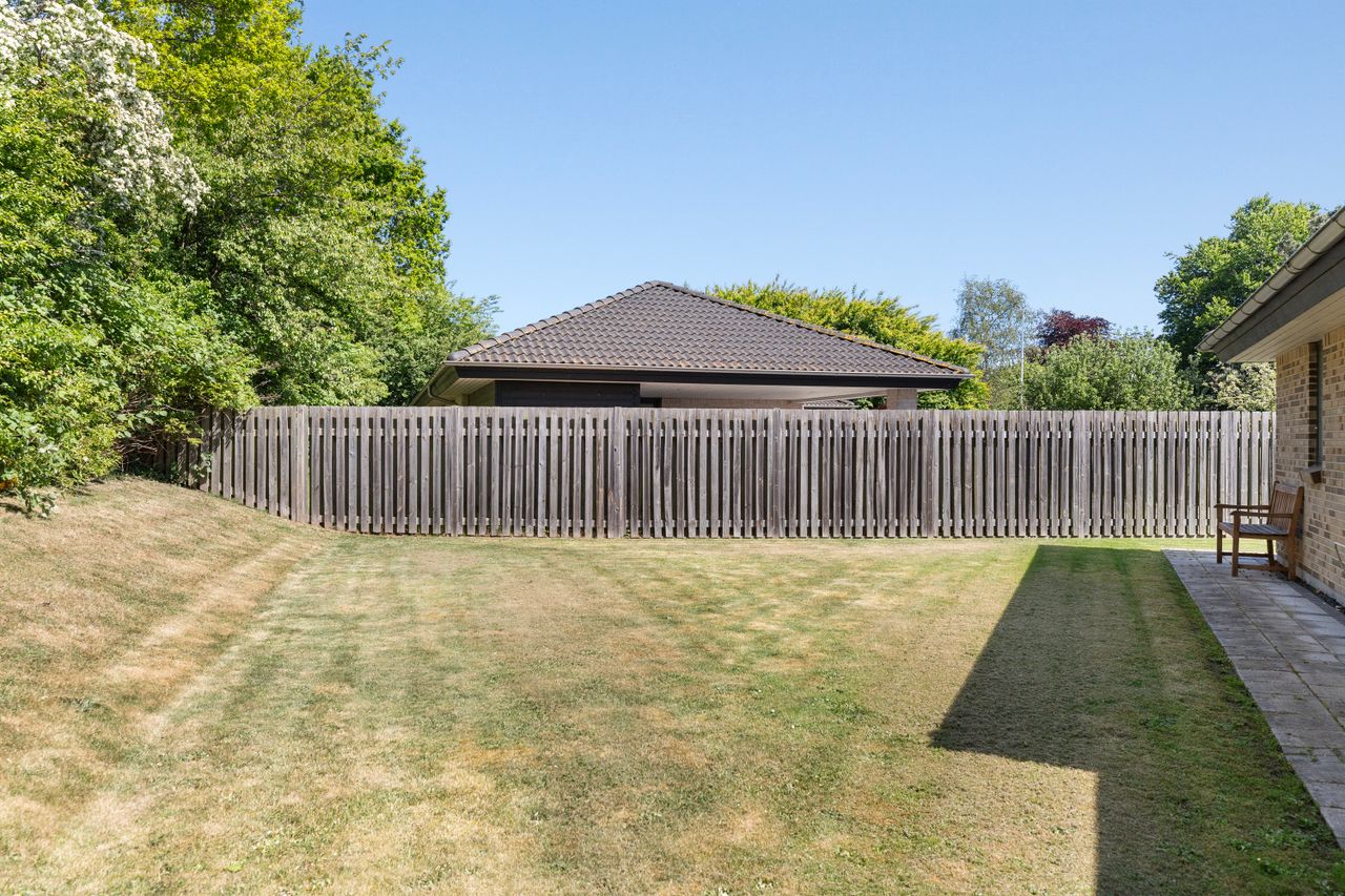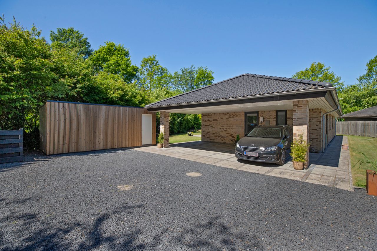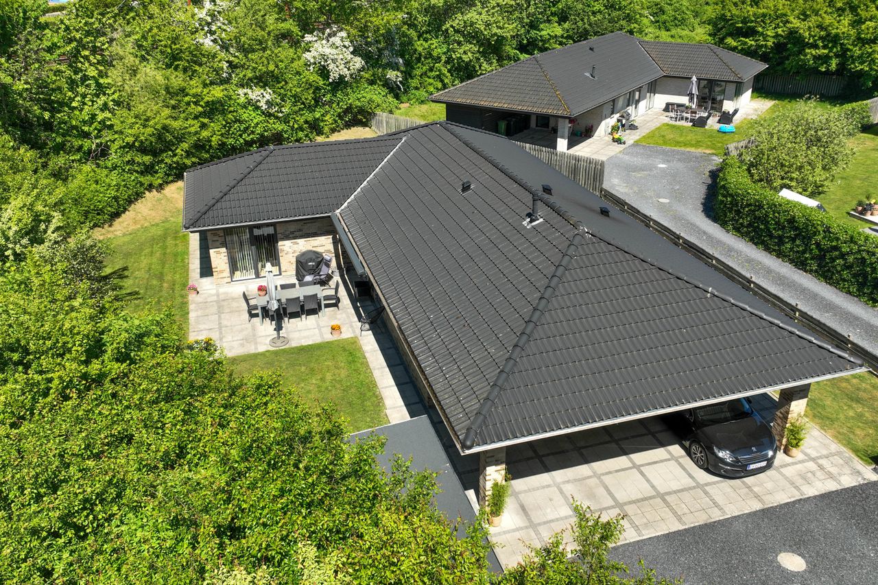Den store fliseterrasse med elmarkise danner rammen om alt fra rolige morgenstunder med kaffe i hånden til grillaftener under skumringens lys. Haven er velplejet og omkranset af flot beplantning, mens det helt nye isolerede udhus og den dobbelte carport integreret under husets tag tilføjer både funktion og æstetik. I det børnevenlige og rolige kvarter skaber et trygt sti-system til både skole og sport de perfekte rammer for hele familien, og stranden, blot fem minutters gang væk, byder på gåture og friske dukkerter året rundt.