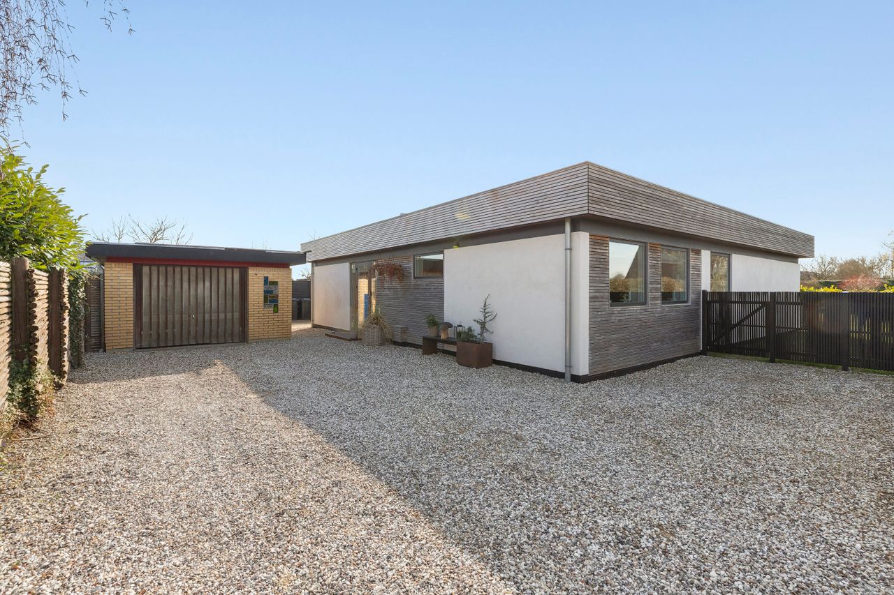 Den nye 80 kvm. store træterrasse breder sig på to sider af huset og skaber et skønt uderum til både afslapning og samvær. Her leves livet barfodet i morgensolen, omgivet af loungemøbler, liggestole og duften fra grillen. Haven er anlagt med højbede, en blød græsplæne til leg og et smukt krogede træ, der tilfører stemning. Forhaven rummer både garage og parkering, og nabolaget er fyldt med liv – her bor både børn og voksne side om side. Alt er tæt på, fra Uglegårdsskolen og daginstitutioner til Solrød Centerets butikker og S-toget, der bringer dig videre med et øjebliks lethed.