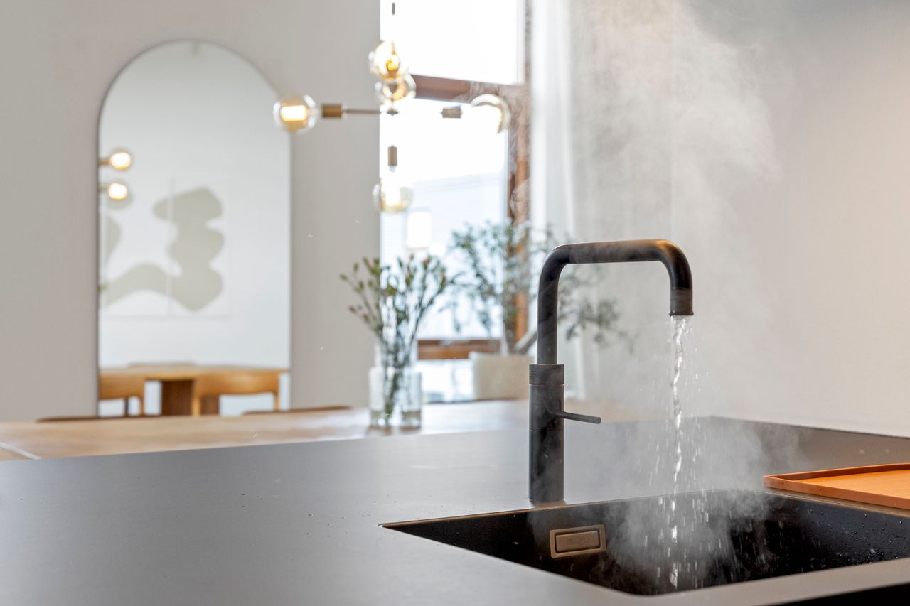Det hele er gennemført – som var det løftet ud af et boligmagasin. De smukke egetræsgulve og hvide gipslofter danner en perfekt ramme om hverdagen, og det sorte helt nye samtalekøkken står skarpt med quooker, Blanco-vask og fine, gennemførte detaljer. Køkkenet er åbent mod alrum og stue, hvor store vinduespartier, fransk altan og udgang til altanen trækker lyset helt ind. Et rum med stemning, plads til langbord, sofahygge og ro. Badeværelset er lige så lækkert – med pudsede vægge, gulvvarme, glasafskærmning og rainshower. Messingarmaturerne fuldender udtrykket. Soveværelset har flot skabsvæg – lad vinduet stå på klem og mærk sommerbrisen glide ind. Herfra er der adgang til badeværelset, som også kan nås fra køkkenet. Et ekstra værelse giver mulighed for både børneværelse, hjemmekontor eller gæster – og ønskes et tredje værelse, er det bestemt muligt at etablere.
