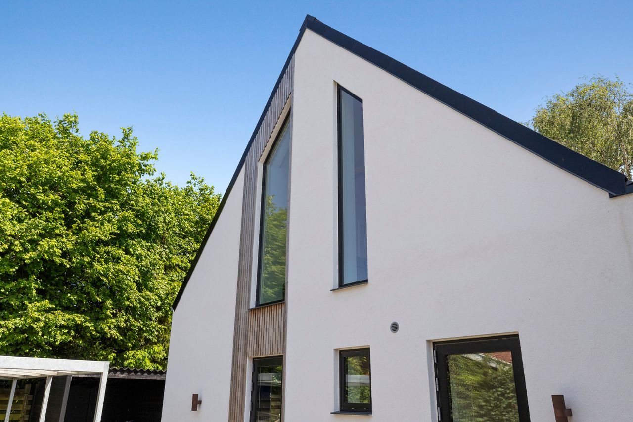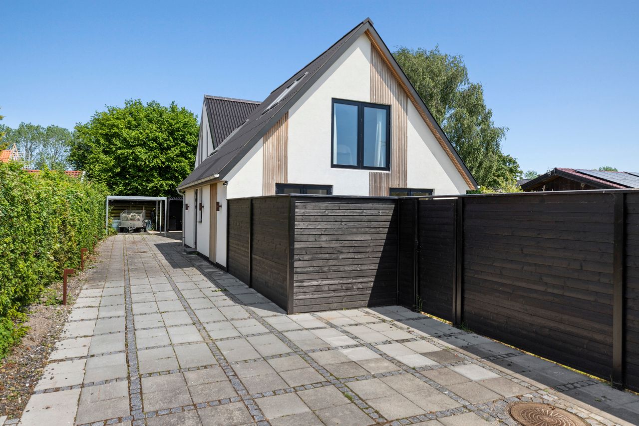 På en lille, lukket vej, hvor naboerne hilser, står denne totalrenoverede bolig, færdiggjort i 2024, og venter på nye kapitler. Alt er nyt, bortset fra tre ydervægge fra det oprindelige hus – en bolig, hvor lys, luft og åbenhed er i centrum. Her får du en luksus bolig – en bolig, der er lige så eftertragtet som den saftigste blomme på træet.