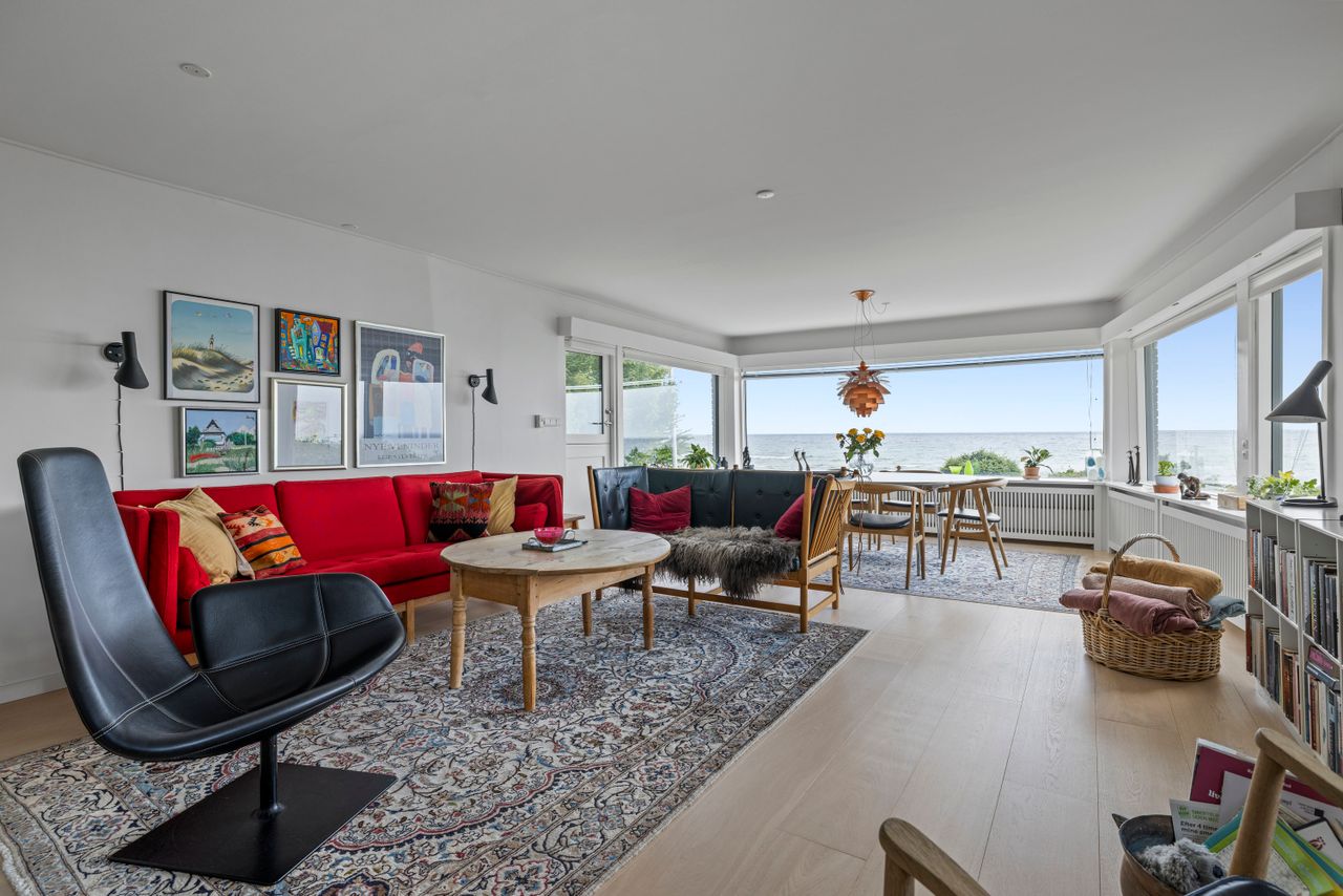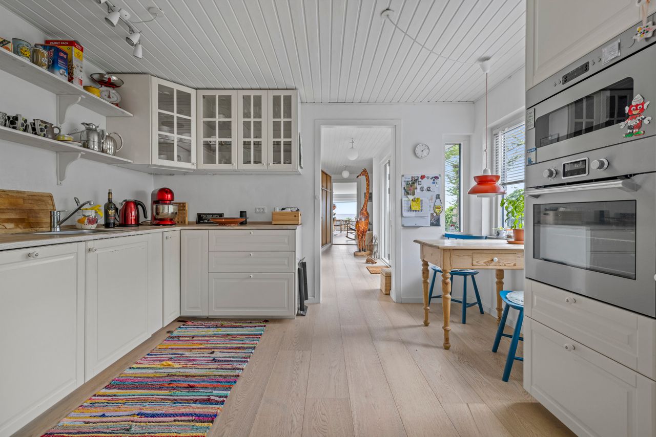 En lys og indbydende bolig, hvor den fantastiske udsigt går lige i hjertet. Massive egeplankegulve og gulvvarme de fleste steder. Det nyere, hvide køkken har fyldningslåger, vitriner og små detaljer, der emmer af sommerliv. Her er plads til morgenmad og hurtige hverdagsmåltider. Dejligt stueområde hvor pejsen giver varme og hygge. Spisebordet står med enestående udsigt til det blå – med store vinduer på tre sider og terrassedør. 2 badeværelser og et gæstetoilet. Gode disponible rum, som giver mulighed for hjemmekontor, gæsteværelser eller kreativ frihed. På førstesalen strømmer lyset ind fra alle sider. Reposen med stor karnap kan være læsekrog eller stille hjørne. Et dejligt værelse med vindue i hele gavlen og med udgang til altan, hvor aftensolen kan nydes. Et unikt forældresoveværelse direkte til vandet, vågn op til solopgangen og se stjernehimlen fra sengen. Direkte udgang til stor terrasse med en udsigt der ganske enkelt tager pusten fra dig