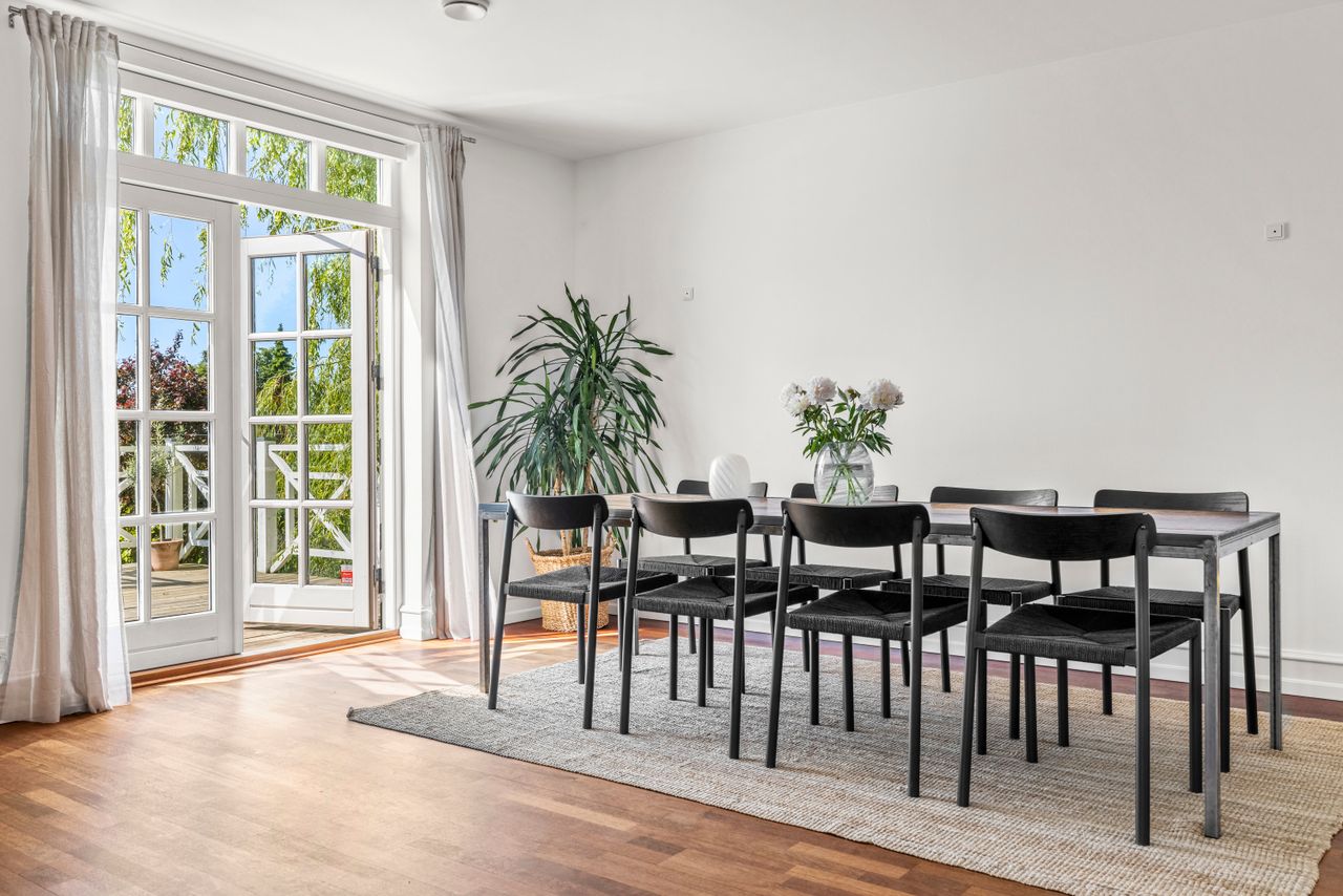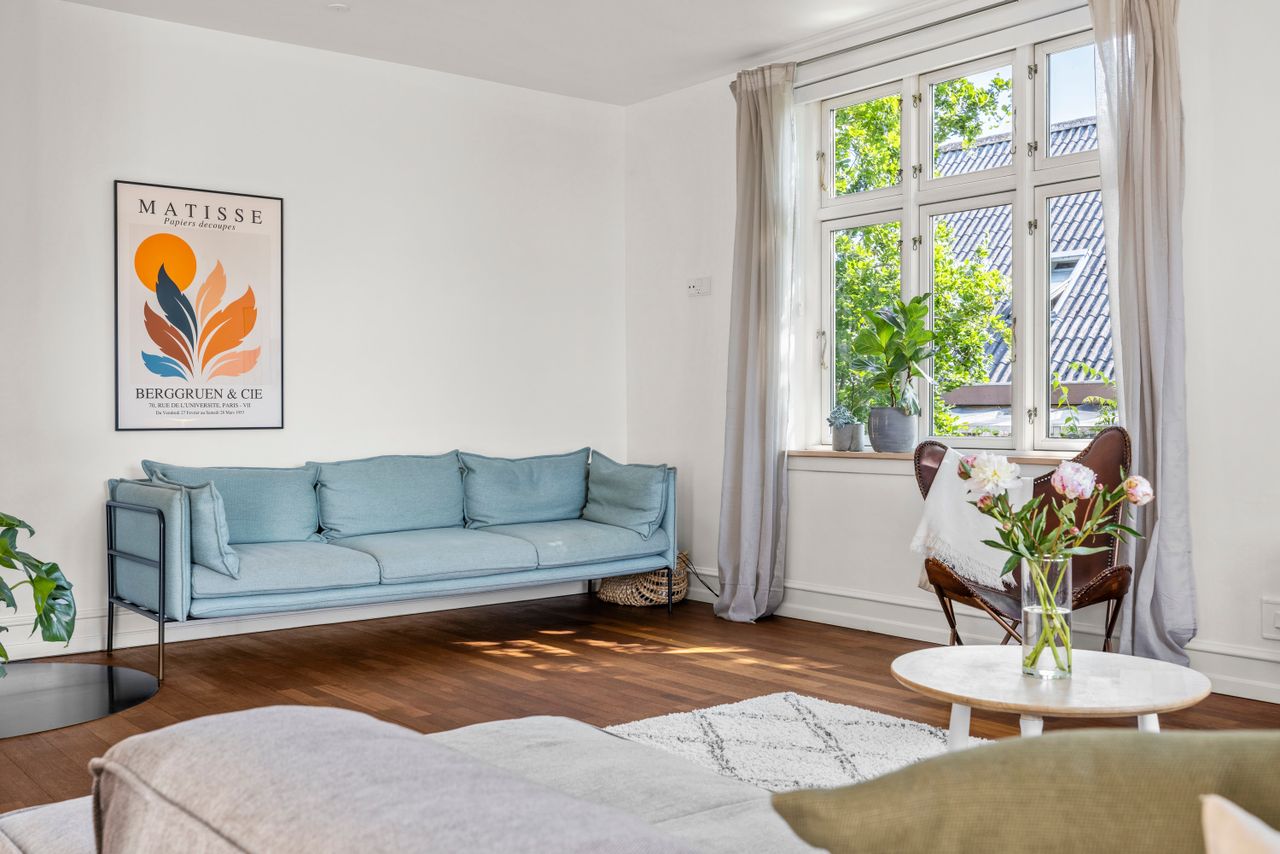 En markant ejendom rejser sig i kvarteret – høj, herskabelig og arkitektonisk gennemført med dannebrogsvinduer, glaserede tegl og pudsede facader. Opført i 1937, hvor funkis og nyklassicisme fandt sammen i dansk arkitektur – samme år som Danmark fejrede Kong Christian den X’s 25-års regeringsjubilæum og indviede Storstrømsbroen. Et stilsikkert vidnesbyrd om sin tid – nænsomt renoveret og smukt udvidet. Med stolthed, karakter og diskret pragt. Ikke som de andre.
