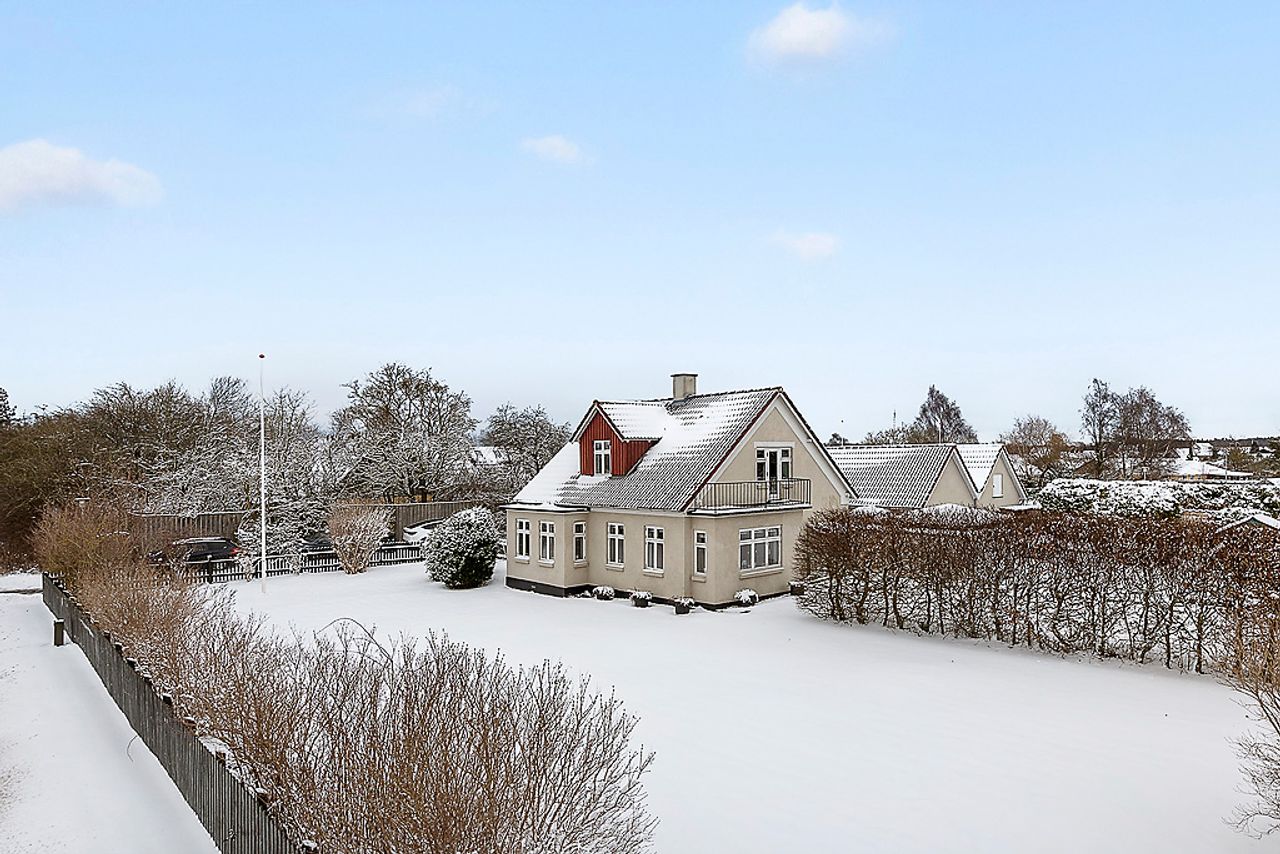 Pudsede facader, hvide dannebrogsvinduer, karnap, kvist og altan. En murermestervilla med præcis den charme og sjæl, man håber på i et hus fra 1910. Udtrykket er klassisk og velproportioneret, og helheden står i dag velholdt efter løbende vedligeholdelse – en bolig, der bærer sin historie med ro og værdighed.