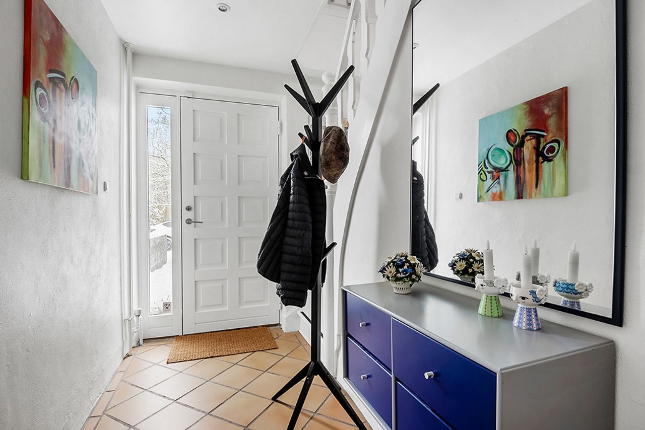 To stuer ligger en suite, hvor den ene åbner sig med karnap mod dagslys. Her er plads til både sofahygge og lange middage, når stearinlysene tændes, og glassene fyldes. Spisekøkkenet er lyst og rummeligt med god plads til familien og udstyret med Smeg-induktionskomfur med to ovne – et køkken for dem, der holder af at lave mad. I stueplan findes desuden et gæstetoilet og et dejligt badeværelse med New Yorker-væg i brusenichen. På førstesalen løftes stemningen med lofter til kip og frie hanebånd. En stor, lys repos danner en naturlig overgang mellem rummene og giver plads til hjemmekontor, alrum eller en stille krog. To værelser ligger heroppe, og fra soveværelset er der udgang til altanen, hvor morgensolen kan nydes i ro sammen med kaffen. Boligen er opdateret med varmepumpe og hulmursisolering.