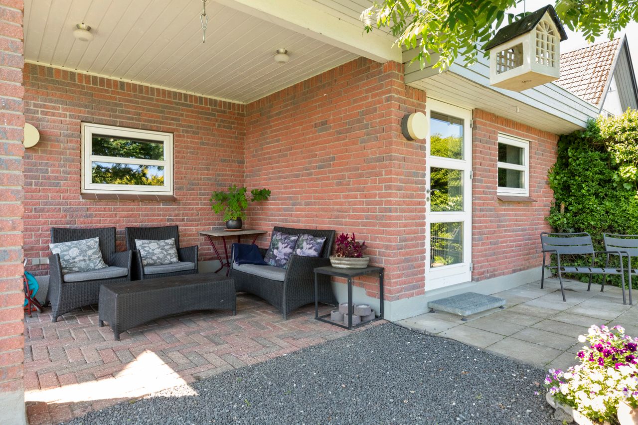 I haven finder solen altid vej til en af de dejlige fliseterrasser – her er der rum til både solsenge, loungemøbler og lange middage med grillen tændt. Én terrasse er overdækket, så sommeraftenerne kan trække ud, og regnvejr ikke sætter en stopper for udelivet. Græsset er blødt under bare tæer, og i orangeriet spirer grønne drømme – eller der skænkes et glas og nydes en stille stund. En rummelig garage på samt isoleret værksted/hobbyrum i alt 46 kvm - plads til både opbevaring og værksted, og bilen. Fra den ugenerte have – lige i smørhullet – er du tæt på Solgårdsparken, Vallø Skov og slotsparkens stille skønhed, og kun 700 meter til strand og badebro, hvor morgensvømmeturen eller aftengåturen venter. Alt det daglige har du lige ved hånden her i Strøby Egede. Og har du brug for byens puls, er der kun ti minutter til Køge Torv med torvedage, caféer og gamle gader. Fra Køge Nord Station når du København på bare 20 minutter.