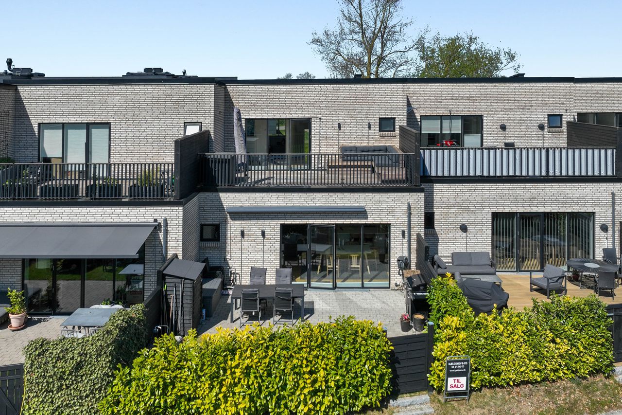Som trukket op af en tryllehat – et eksklusivt byggeri i to fulde plan midt i den grønne og åbne natur. Huset rejser sig i to fulde plan – opført i 2017 i hvid nordisk stil med rene linjer, højt til loftet og vinduespartier, der lader lyset vandre frit og give det hele en lethed. Øverst venter en tagterrasse på 30 kvm., som ikke behøver anden introduktion end dette: uimodståelig. Indret den med lounge, solsenge eller cafébord – og lad den tage over, når solen gør det samme.