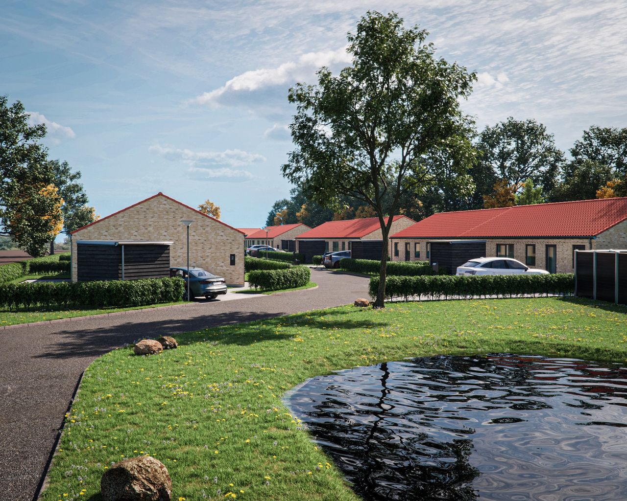Projektsalg i Greve Landsby - 12 rækkehuse, skabt med klassiske linjer og nutidens behov for øje. Landsbyen, kendt for sin hvide kirke fra 1175 og præstegården, som dannede rammen om den oprindelige julefilm “Nøddebo Præstegård”, emmer af historie og lokal charme. Markerne, der engang tilhørte områdets landmænd, er nu forvandlet til et sted, hvor nye hjem vokser frem.