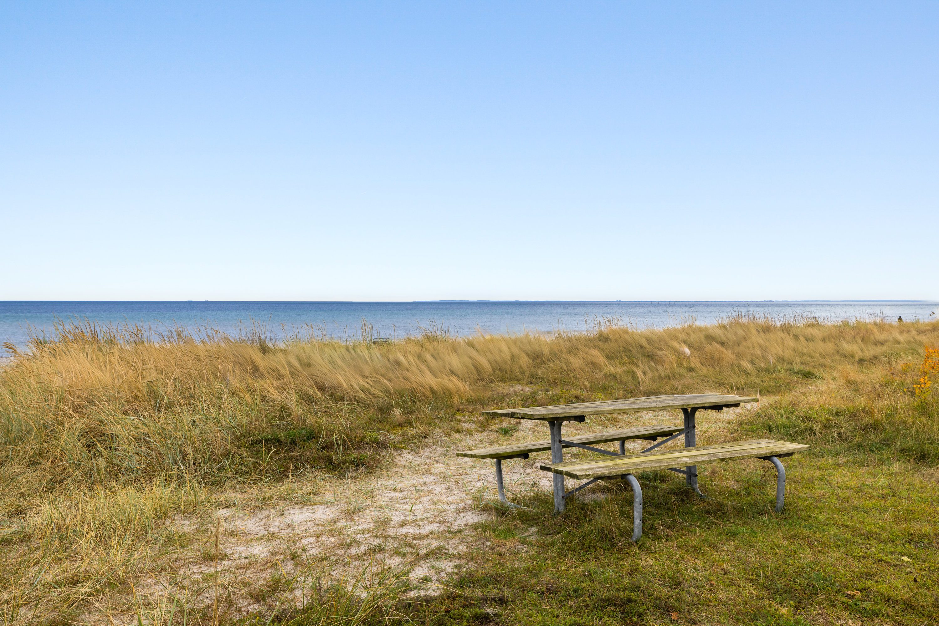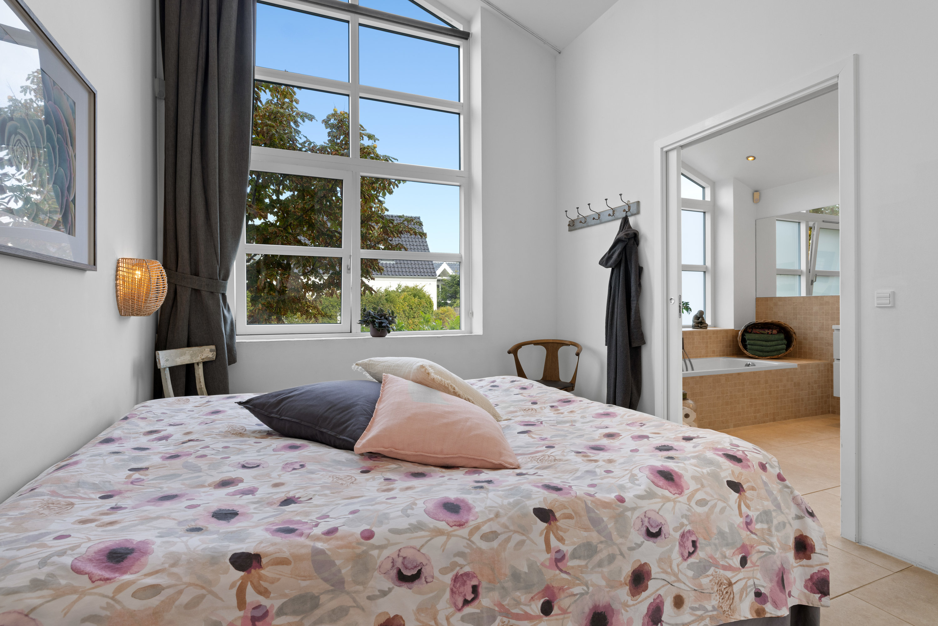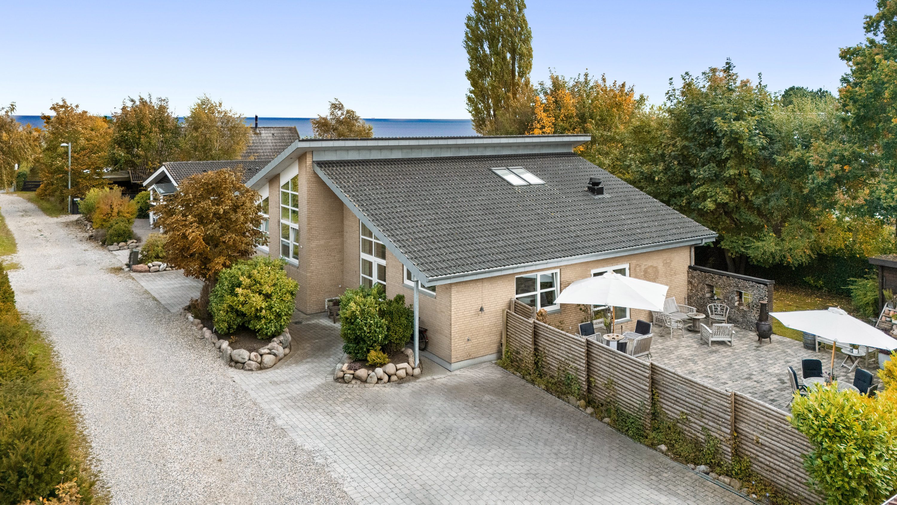 Med stranden for enden af vejen og morgendukkerten som en del af dagen – kun få skridt fra ejendommen, så er du der. Arkitekten bag denne bolig fra 2012 har ladet sig inspirere af kysten selv; de lyse sandtoner og de bløde kontraster går igen i både materialer og stemning. 249 etagemeter fordelt på forskudte plan, hvor lyset bevæger sig frit fra nord, syd, øst og vest – og endda fra oven.