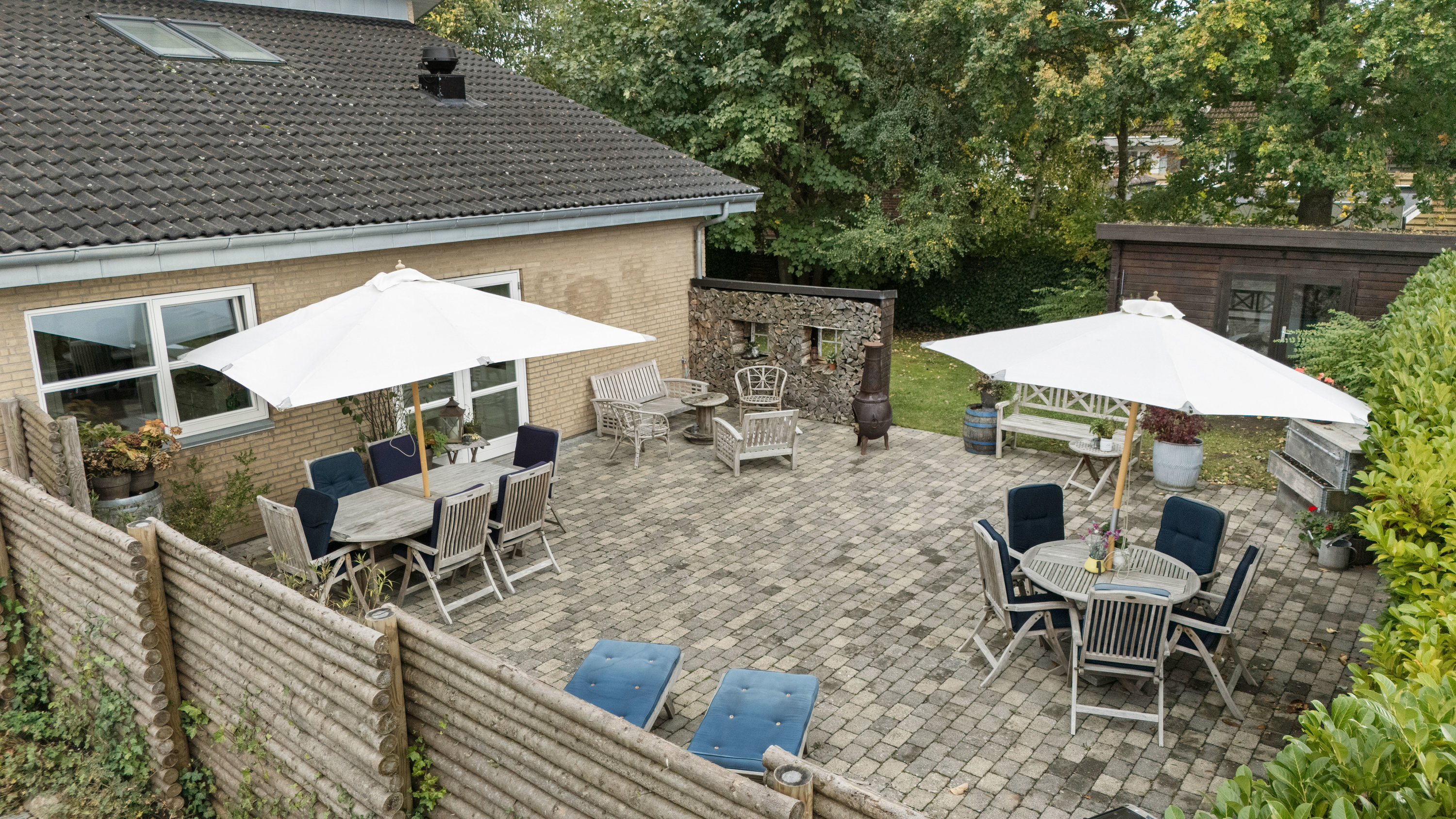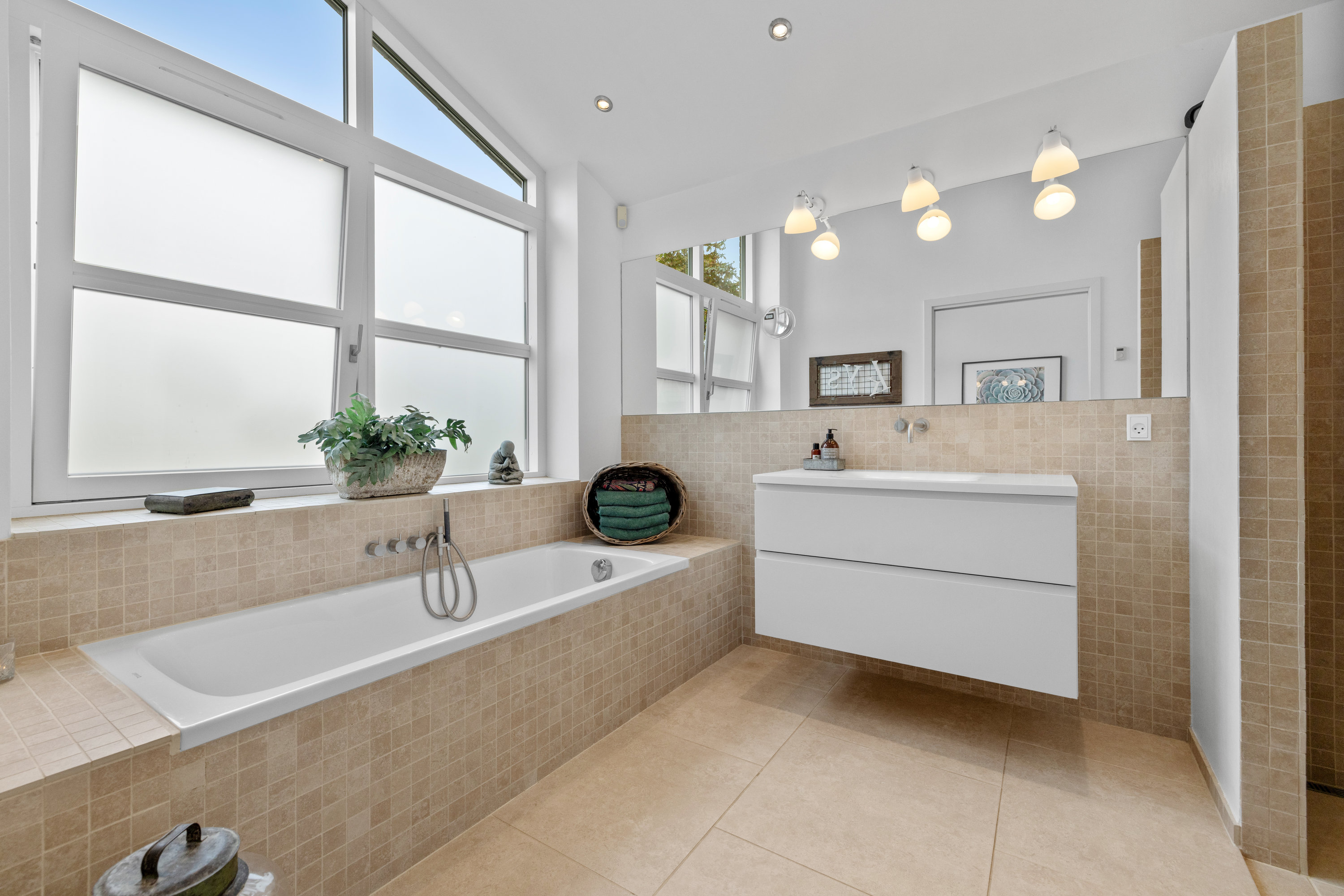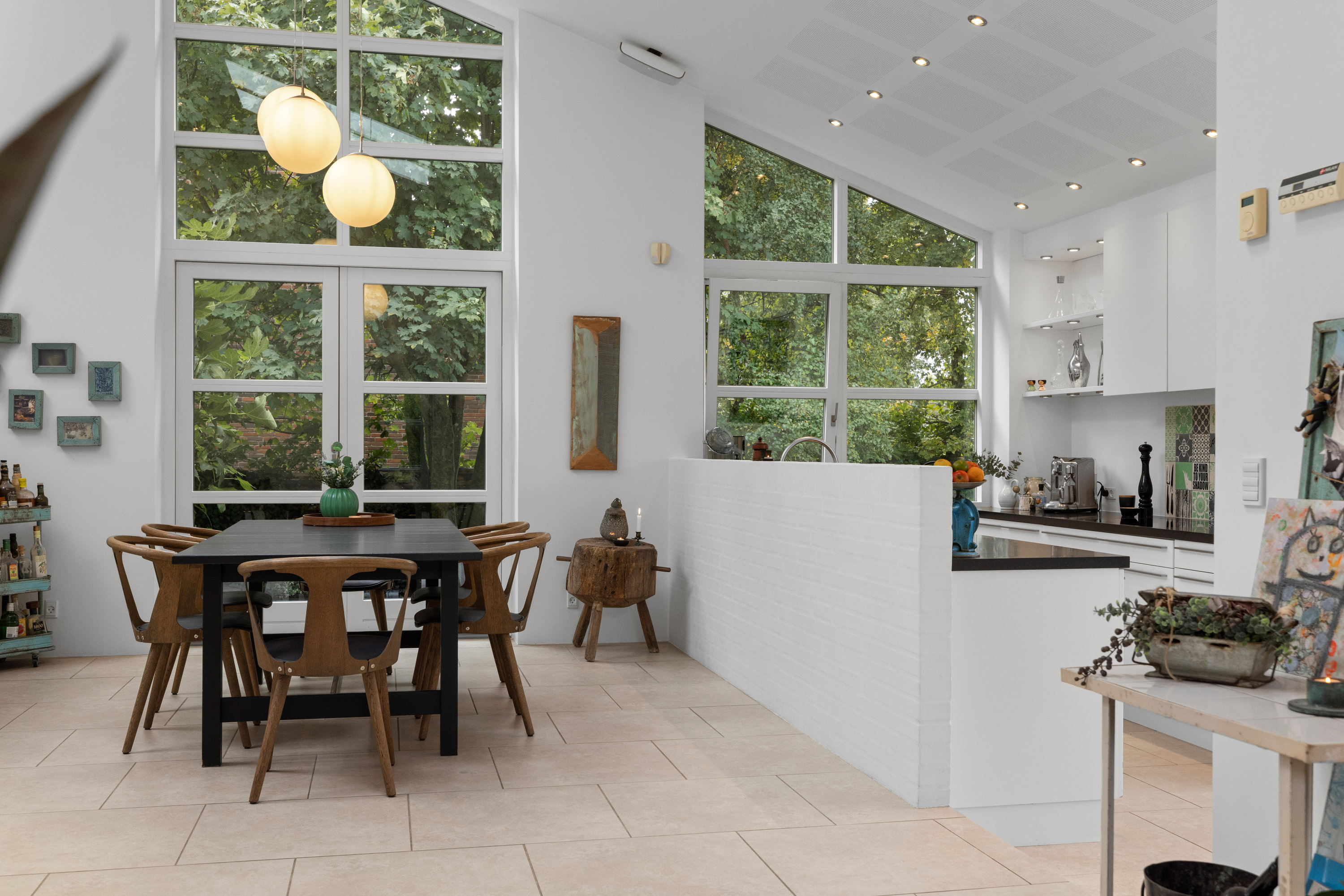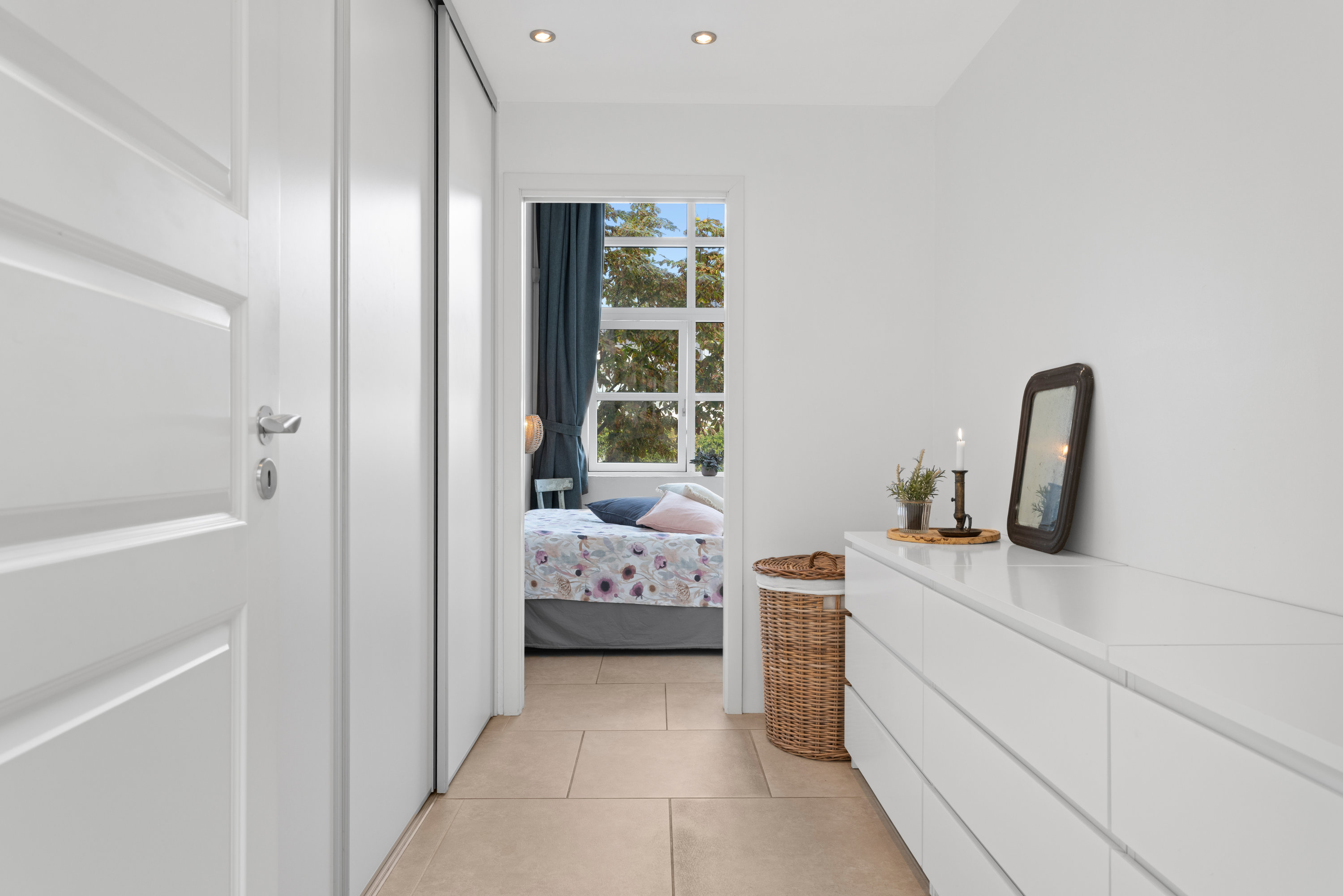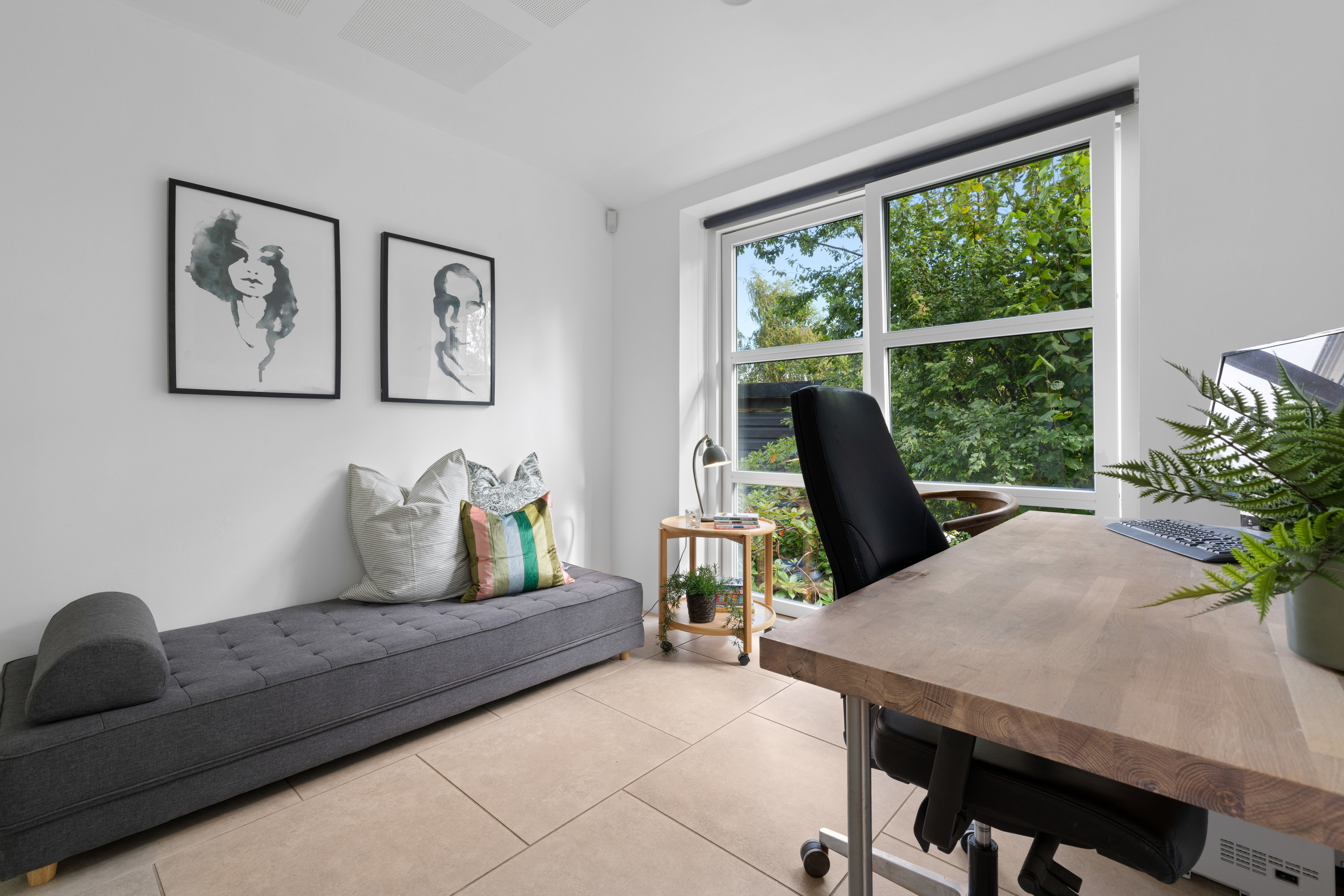 De lyse mursten spejler stranden - zinkinddækninger og hvide lavenergivinduer vidner om et tidløst og veludført byggeri, hvor kvaliteten står lysende klar. Indenfor mærkes det samme arkitektoniske overskud. Sandfarvede klinker med gulvvarme flyder gennem alle boligens rum. Lofter til kip med ovenlys trækker dagslyset helt ned i det store leverum, hvor køkken, alrum og spisestue mødes i ét sammenhængende rum med en ro, der mærkes. Multiform-køkkenet står i hvidt med mørk bordplade og virkelig fine unikke fliser ved komfuret – et køkken skabt til madglæde og kulinarisk overskud. En halvmur markerer overgangen til spiseområdet, hvor langbordet samler familie og gæster, og fra begge sider er der udgang til haven og terrassen, så lyset og luften altid er tæt på. Et par trin fører op til stuen, hvor lofterne fortsætter mod kip, og hvor vinduerne trækker blikket ud mod trækronerne. Der er god plads til både nærvær og familiehygge, og lyset bliver en del af stemningen og roen finder sin plads. Forældreafdelingen byder på soveværelse med garderobe og adgang til et luksusbadeværelse i sandfarvede nuancer, med Vola-armaturer, badekar og bruseniche – et lille stykke wellness i hverdagen. To værelser skaber plads til ro, søvn og fordybelse, og et fint gæstetoilet fuldender etagen. Underetagen/kælderen åbner sig som et ekstra plan med 3 store, lyse rum og en rummelighed, der mærkes. Her er plads til teenagernes univers, gæsteafdeling, hjemmekontor eller et stille rum til fordybelse. Et badeværelse i samme stil som ovenpå fuldender etagen, mens bryggerset med egen indgang gør hverdagen praktisk og let.