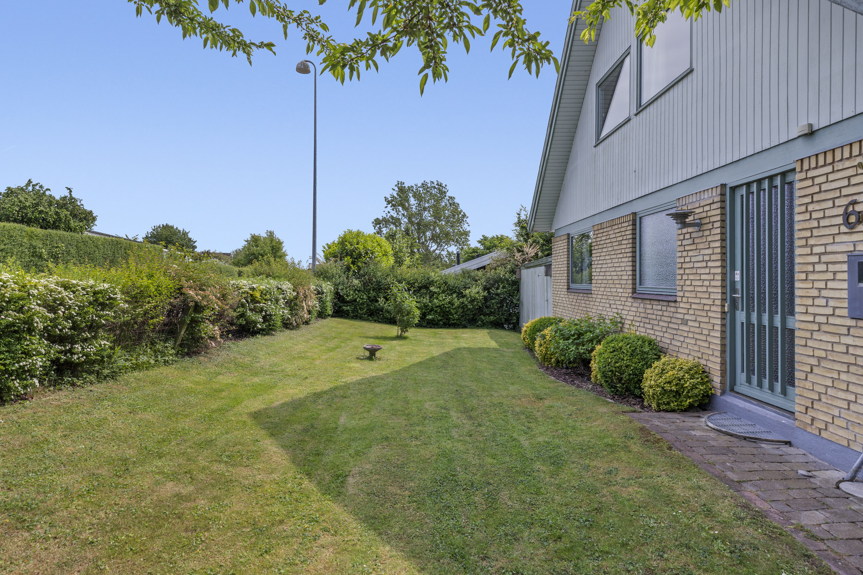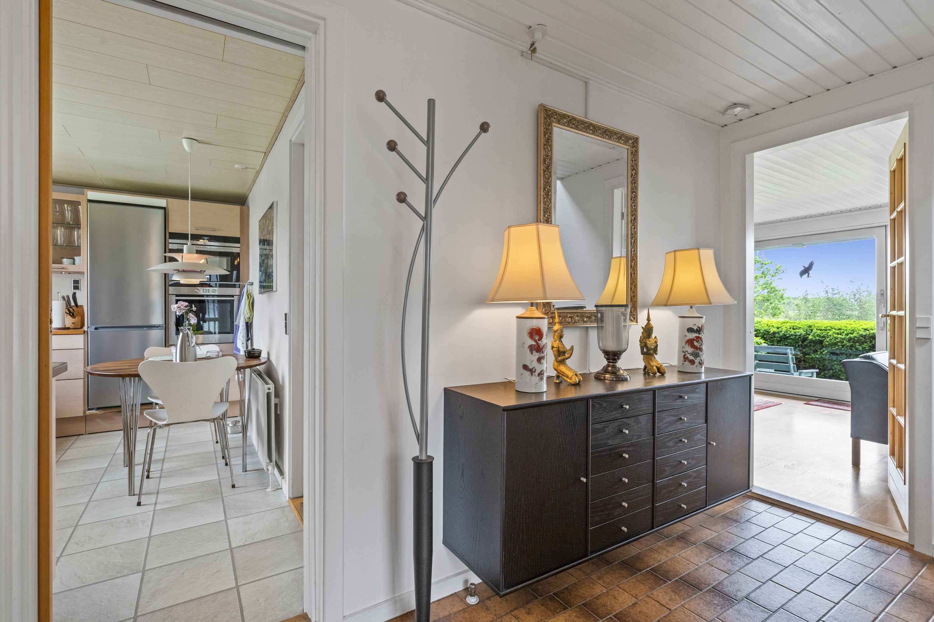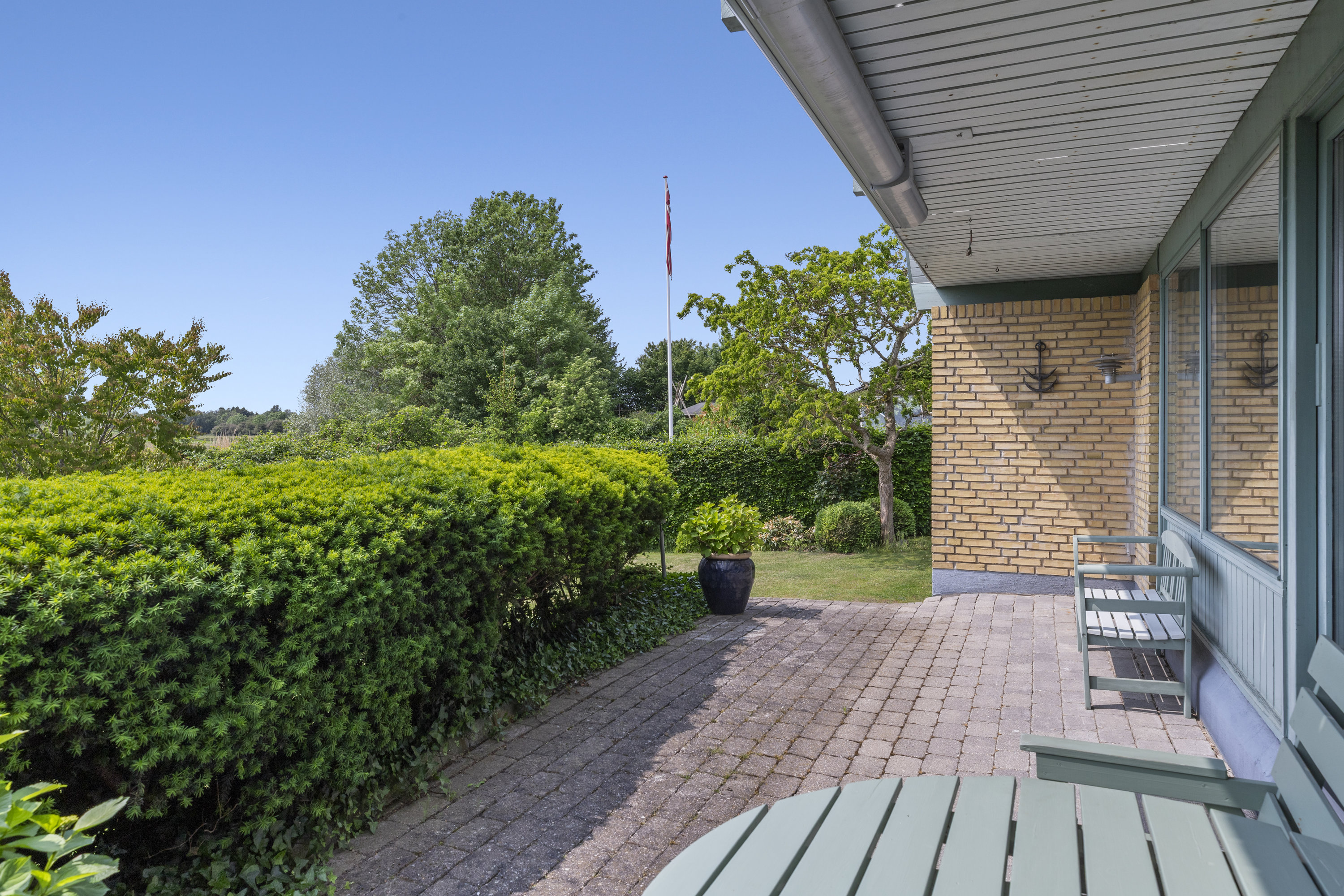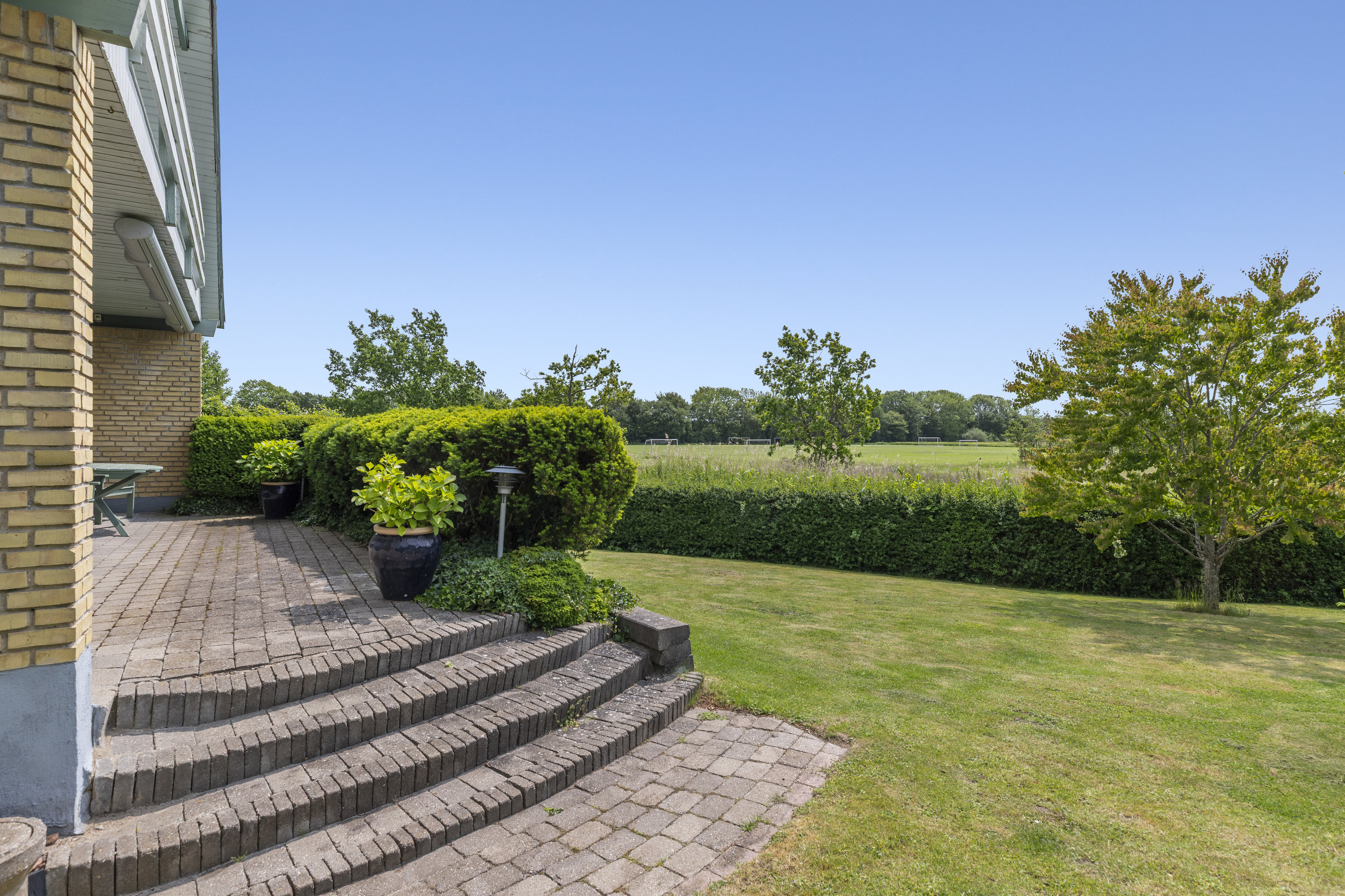 Bag huset åbner landskabet sig mod mosen – et fredet naturområde med enge, siv og vandløb, hvor fuglene trækker spor over himlen, og hvor rådyret indimellem står stille i morgensolen. Her er naturen altid nær, foranderlig og betagende året rundt. Fliseterrassen ligger lunt og solrigt, med markise til skygge på varme dage – og perfekt plads til havemøbler og sommerens lange dage - nyd et glas kold hvidvin og duften af grill, mens solen går ned. Græsplænen foran er oplagt til bold, leg og barfodede skridt, Hele haven føles som en naturlig forlængelse af det åbne landskab. Dobbelt carport og udhus fuldender det praktiske, og omkring dig venter et nabolag med varme relationer og ro – tæt på skole, indkøb, station og stranden, hvor badebroer og bølger lokker hele sommeren. Fra havelågen kan du gå direkte ud i naturen og tage stierne rundt – til fods eller i løbesko. Stranden, badebroen og det klare vand ligger få minutter væk på cykel, og Strandskolen nås på fire minutter i sadlen. Indkøb og tog ligger også tæt på – og hele området emmer af overskuelighed og nærhed.