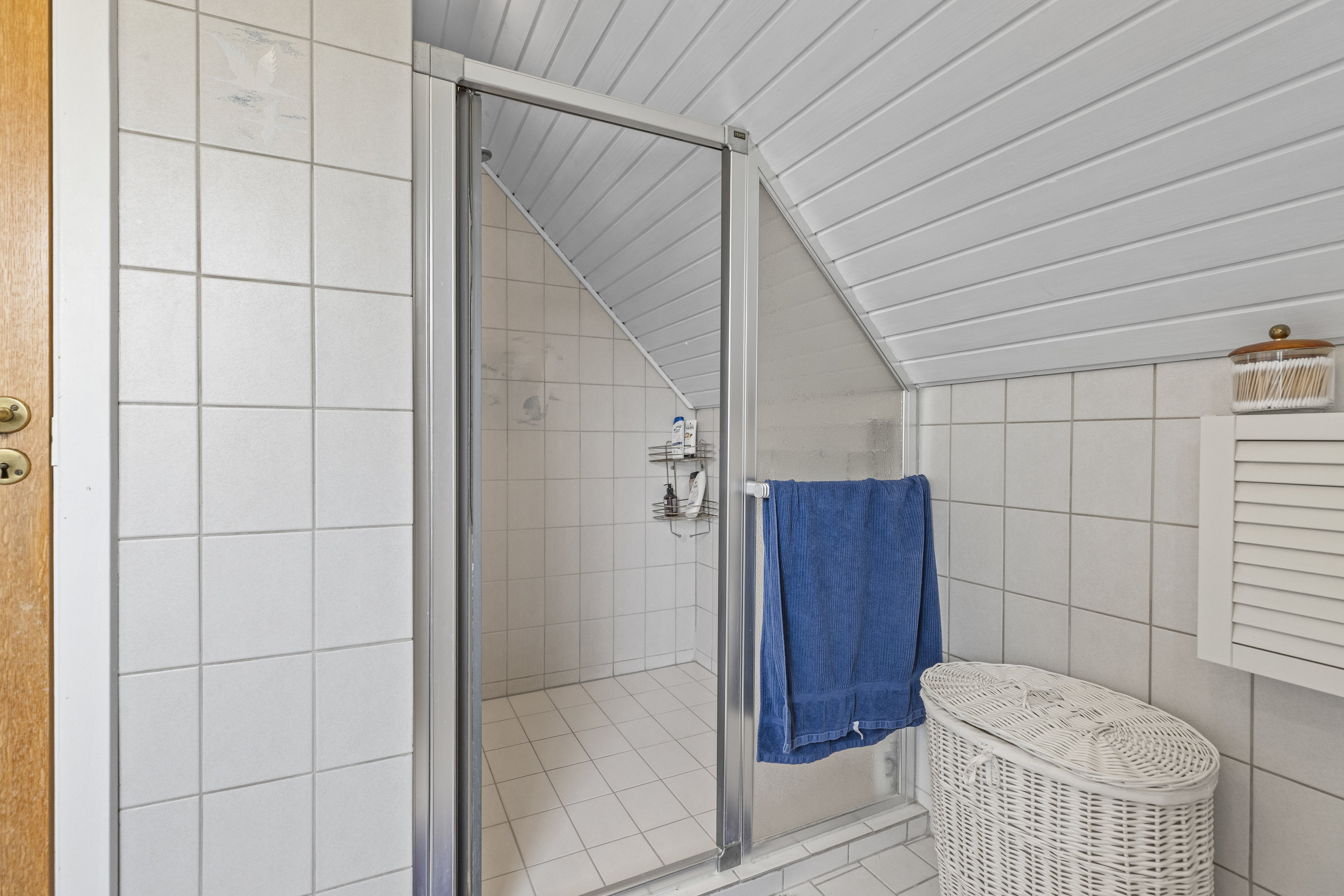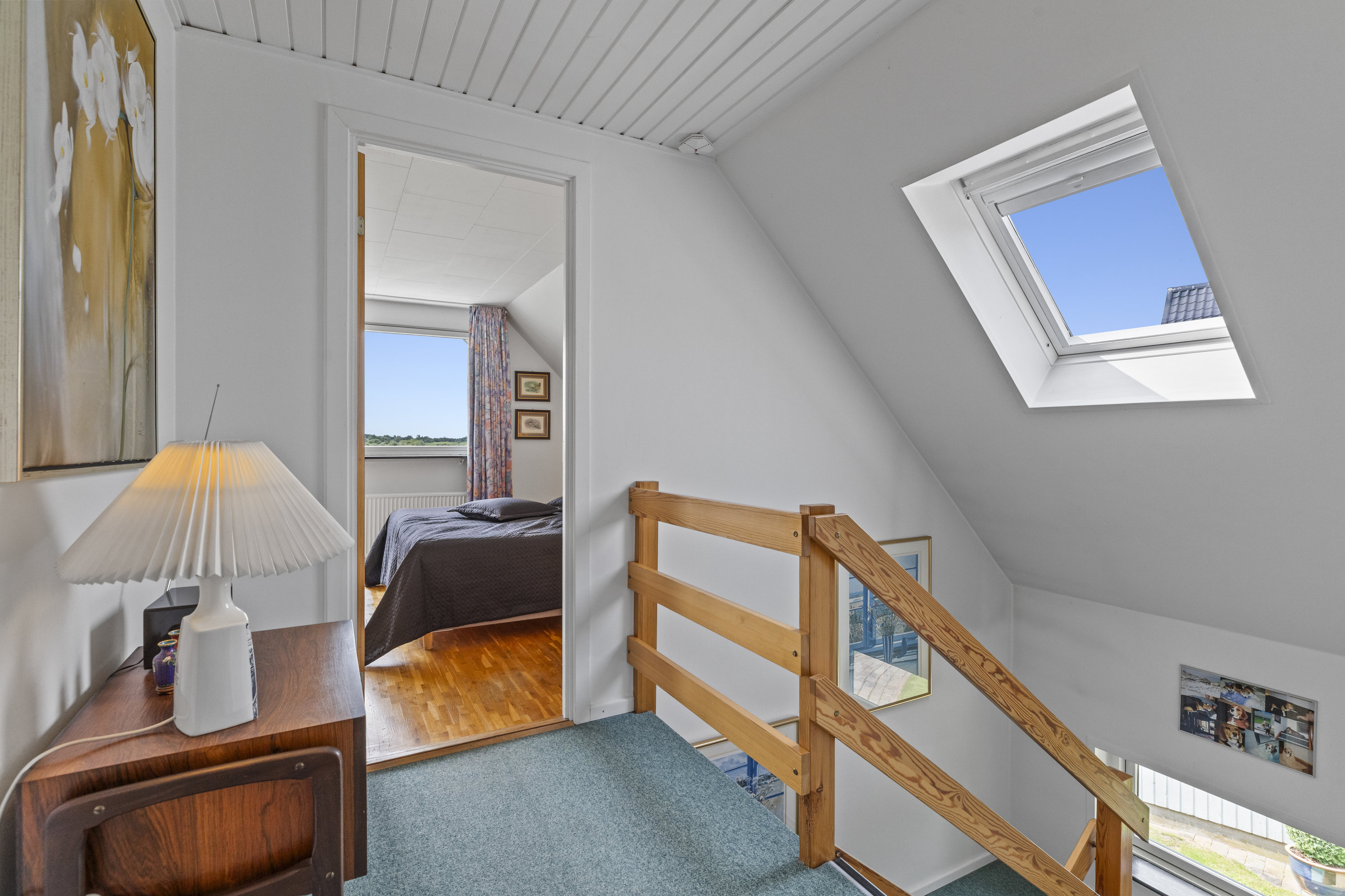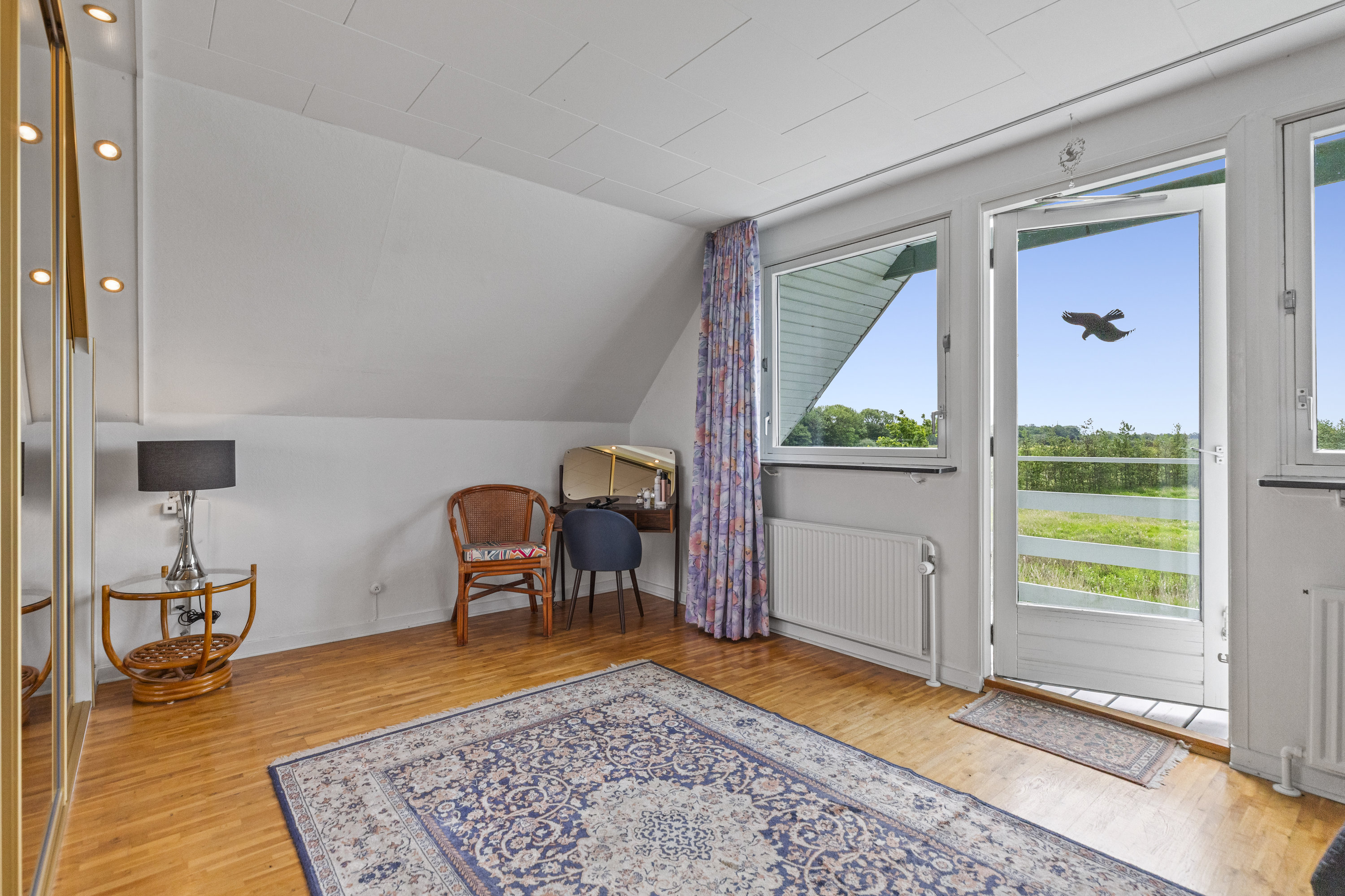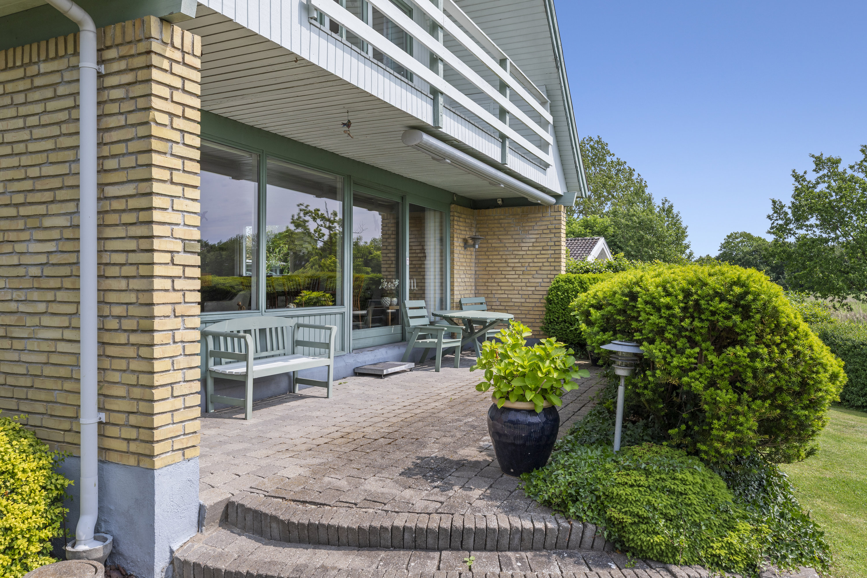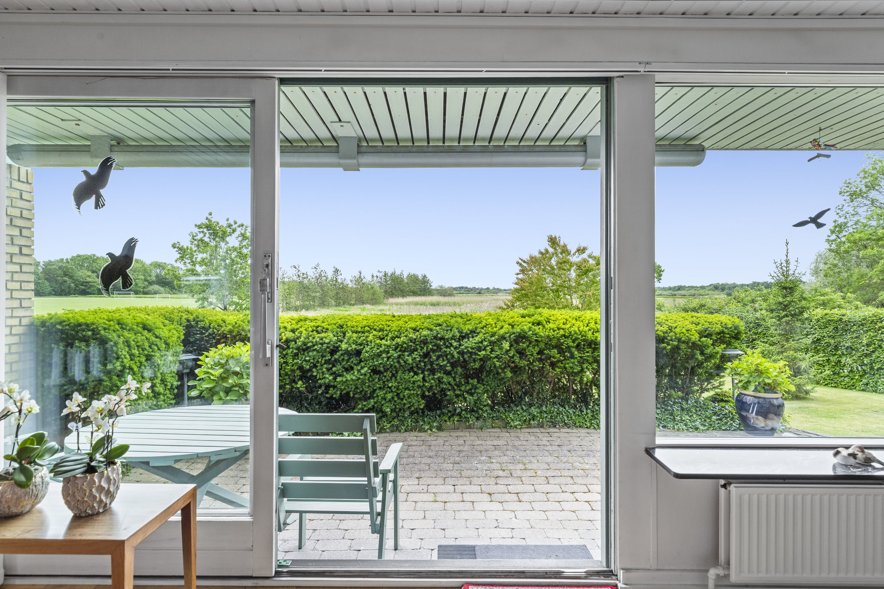 Bag huset åbner landskabet sig mod mosen – et fredet naturområde med enge, siv og vandløb, hvor fuglene trækker spor over himlen, og hvor rådyret indimellem står stille i morgensolen. Her er naturen altid nær, foranderlig og betagende året rundt. Fliseterrassen ligger lunt og solrigt, med markise til skygge på varme dage – og perfekt plads til havemøbler og sommerens lange dage - nyd et glas kold hvidvin og duften af grill, mens solen går ned. Græsplænen foran er oplagt til bold, leg og barfodede skridt, Hele haven føles som en naturlig forlængelse af det åbne landskab. Dobbelt carport og udhus fuldender det praktiske, og omkring dig venter et nabolag med varme relationer og ro – tæt på skole, indkøb, station og stranden, hvor badebroer og bølger lokker hele sommeren. Fra havelågen kan du gå direkte ud i naturen og tage stierne rundt – til fods eller i løbesko. Stranden, badebroen og det klare vand ligger få minutter væk på cykel, og Strandskolen nås på fire minutter i sadlen. Indkøb og tog ligger også tæt på – og hele området emmer af overskuelighed og nærhed.