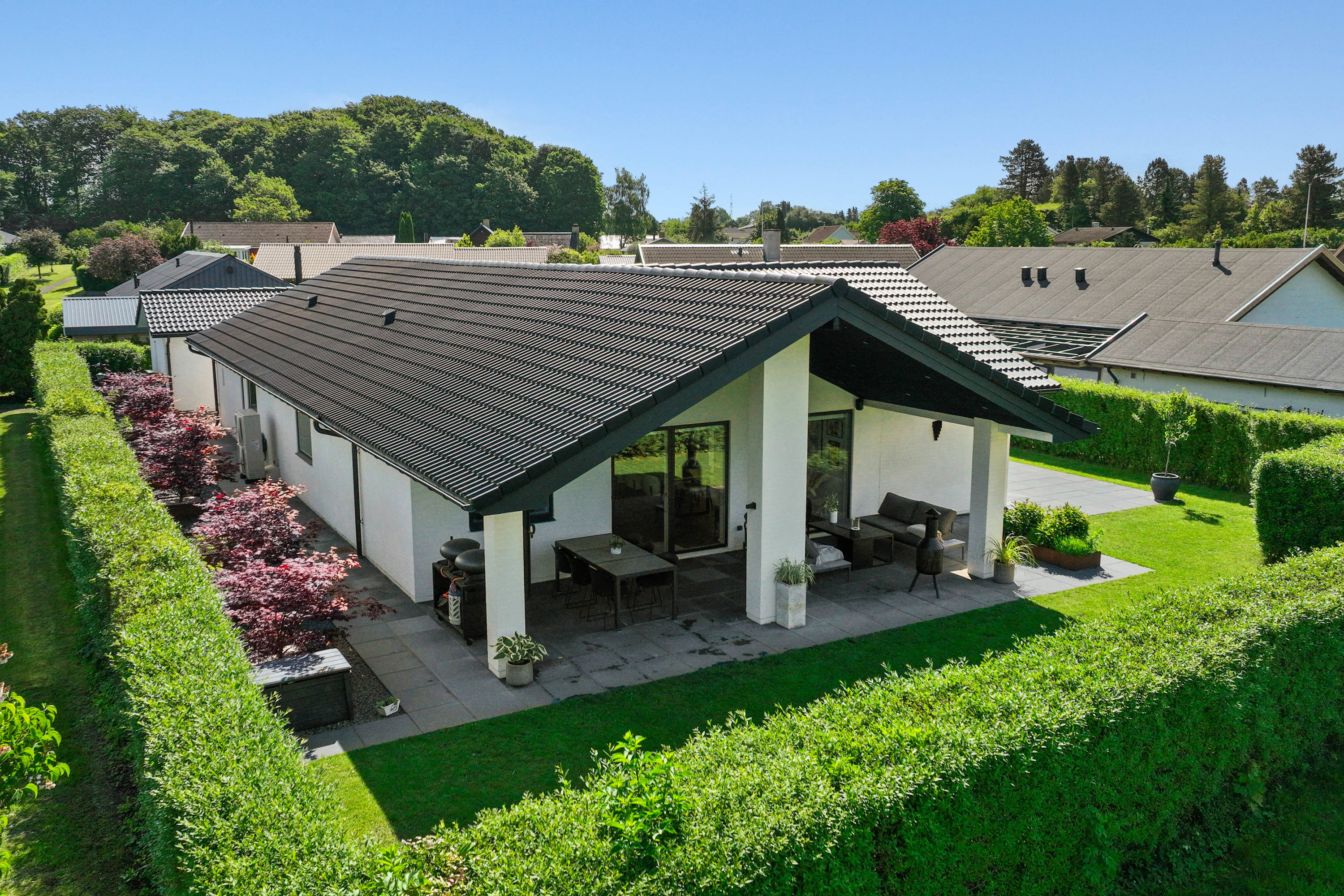 Varmepumpe og blødgøringsanlæg sikrer moderne komfort, mens huset kombinerer æstetik, funktion og velvære.