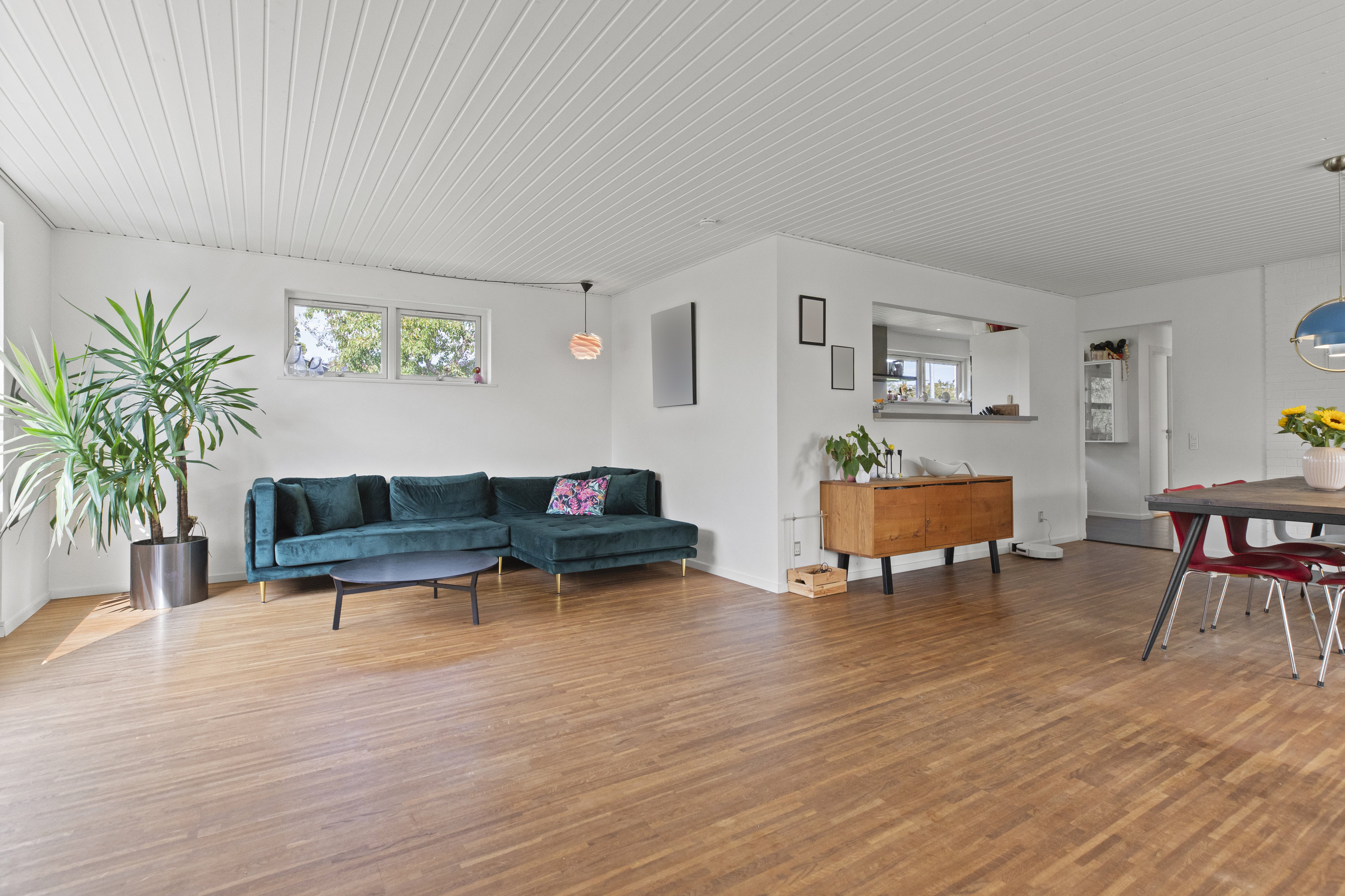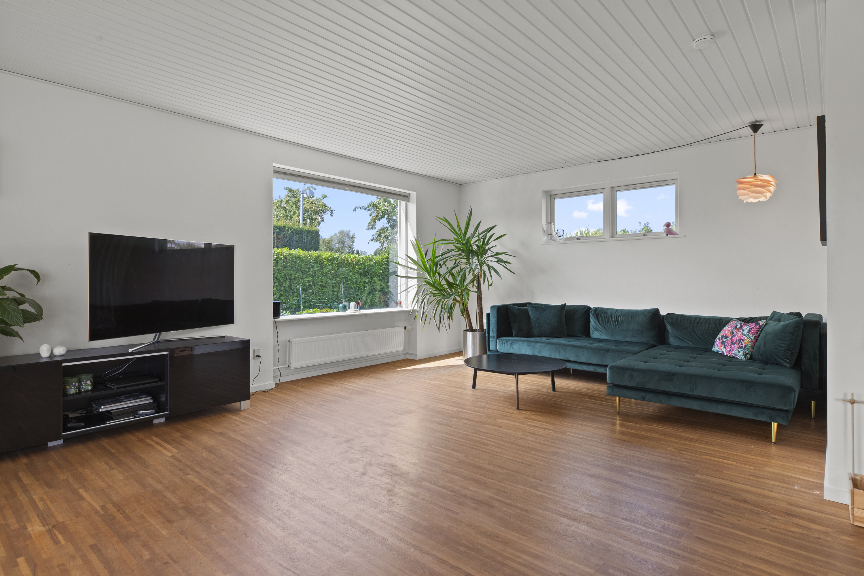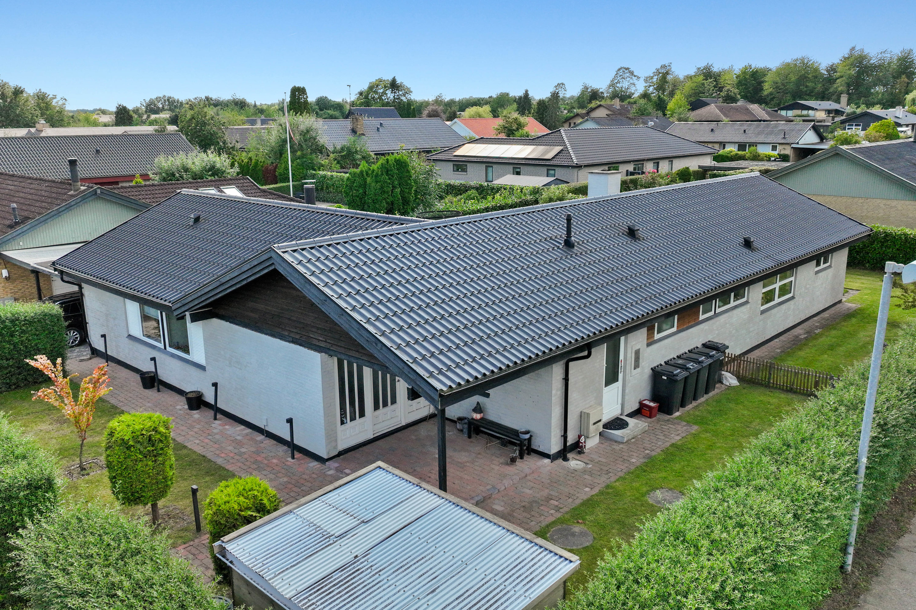 Med en adresse som Fugleparken kan det næsten ikke være anderledes – her vækkes du af fuglesang og morgenlys, der falder blødt over haven. Den istandsatte vinkelvilla breder sig harmonisk over ét plan med 196 gennemtænkte kvadratmeter, der føles lige så rolige som de lyde, der strømmer ind udefra. Alt er indflytningsklart og ordnet med omtanke – en bolig hvor både små og store fødder kan finde ro, rytme og hverdagens lethed.