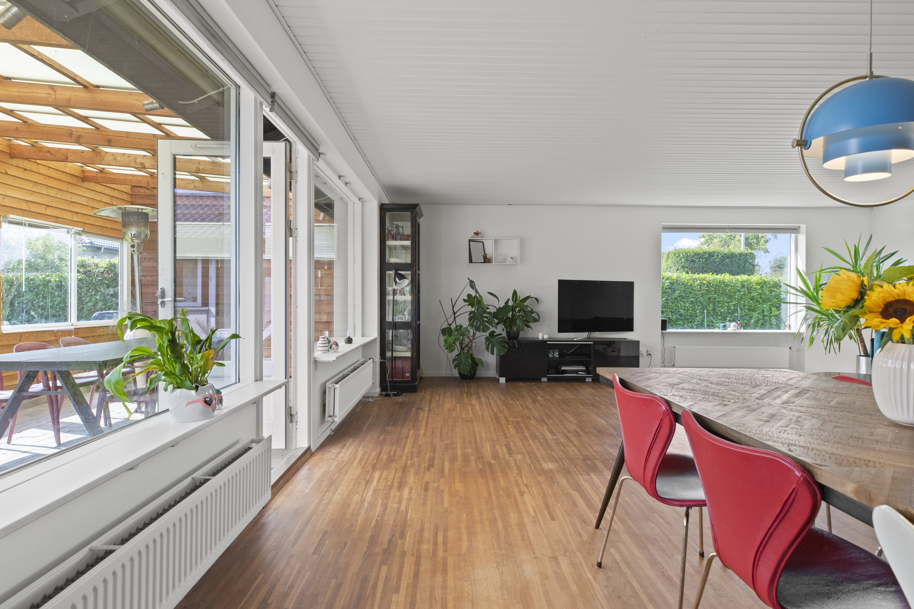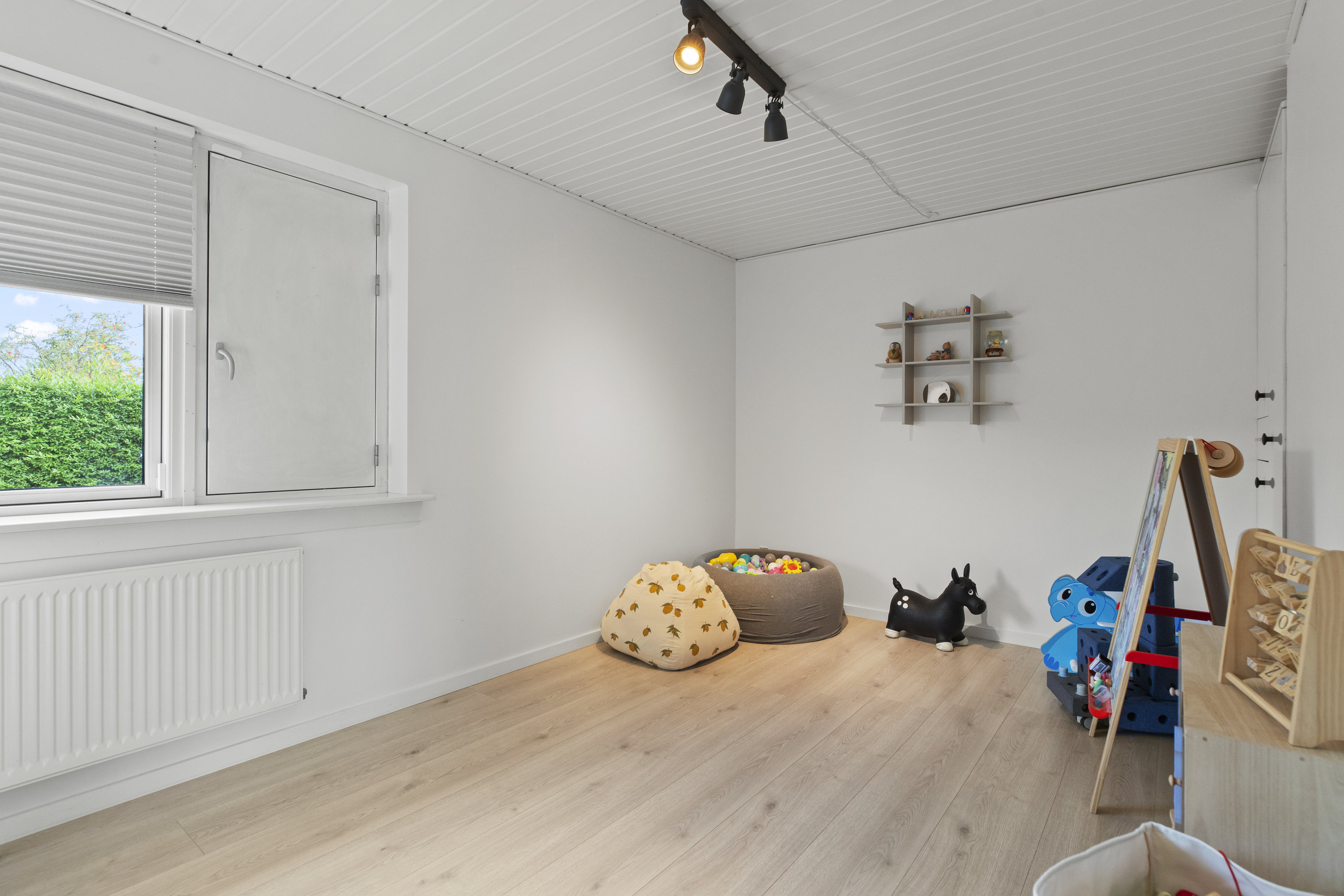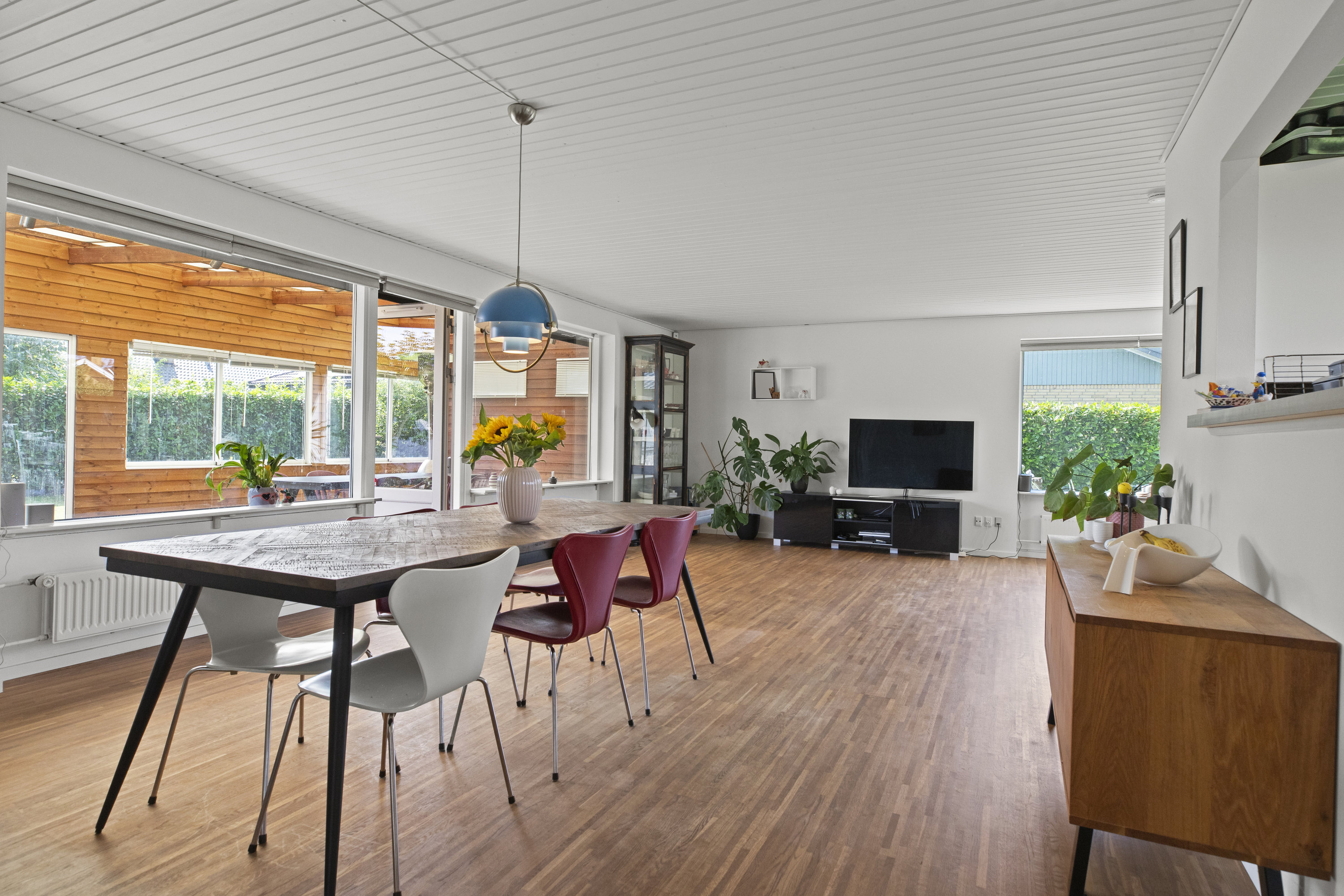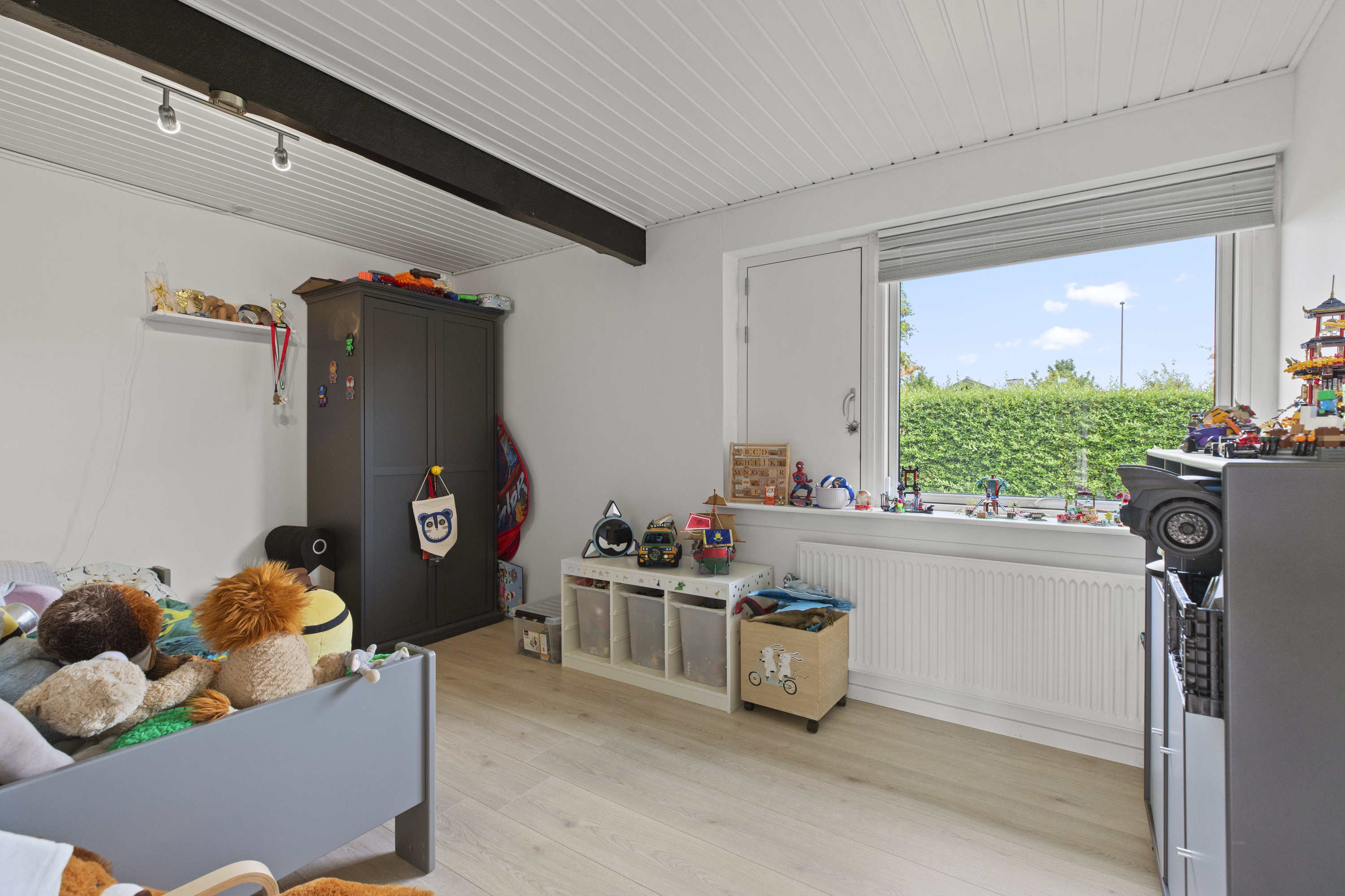 Med en adresse som Fugleparken kan det næsten ikke være anderledes – her vækkes du af fuglesang og morgenlys, der falder blødt over haven. Den istandsatte vinkelvilla breder sig harmonisk over ét plan med 196 gennemtænkte kvadratmeter, der føles lige så rolige som de lyde, der strømmer ind udefra. Alt er indflytningsklart og ordnet med omtanke – en bolig hvor både små og store fødder kan finde ro, rytme og hverdagens lethed.