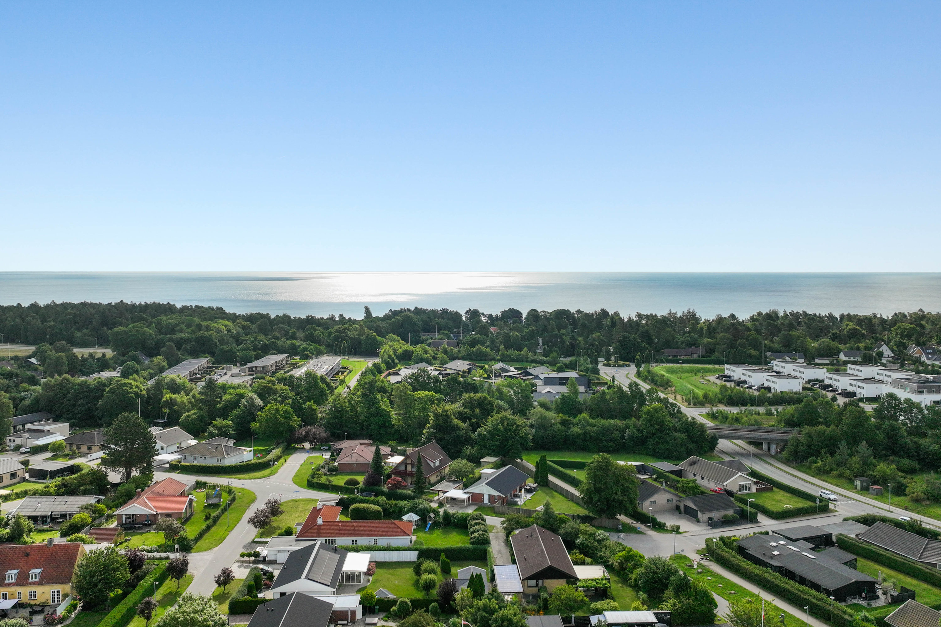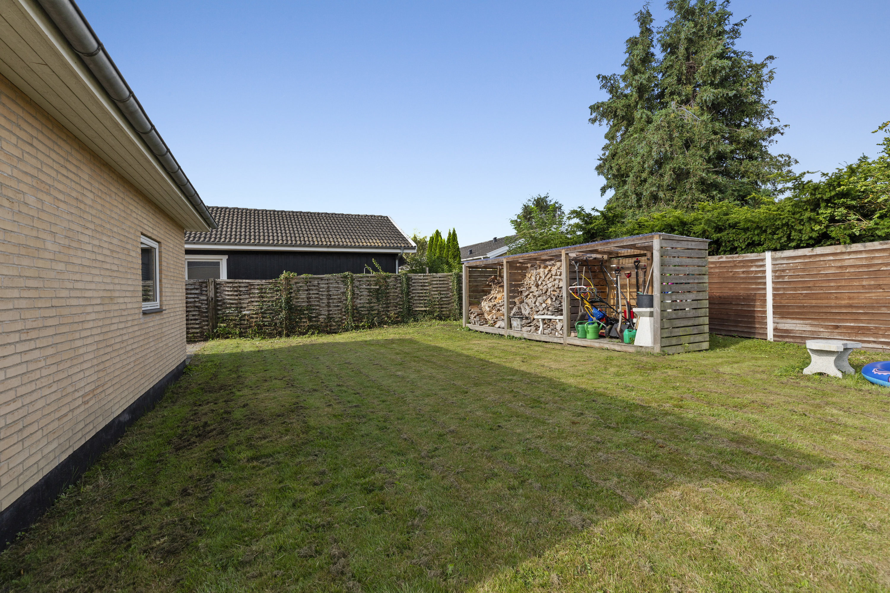 Haven er skabt til både ro og liv – et sted, hvor solen bevæger sig med dig gennem dagen. Fliserne i indkørslen giver plads til bilerne, mens højbedene venter på sommerblomster, krydderurter og de små ting, der gør hverdagen grøn. Der er græs under fødderne, plads til boldspil og et glas vin i aftensolen, og to terrasser, der danner ramme om årstidernes skift – den ene med lævæg og træ under fødderne, den anden perfekt til morgenkaffen. Lige udenfor matriklen tager naturen over. Her breder Karlstrup Mose sig med stier, åbne landskaber og et rigt dyreliv, hvor rådyr og fugle hører til dagens rytme. Trylleskoven med mos, kogler og de flotte krogede gamle træer med små stier imellem og stranden ligger også tæt på. Kun få minutters gang så står du med fødderne i det bløde sand og kigger på det klare vand. Tag en dukkert, når solen står højt.
