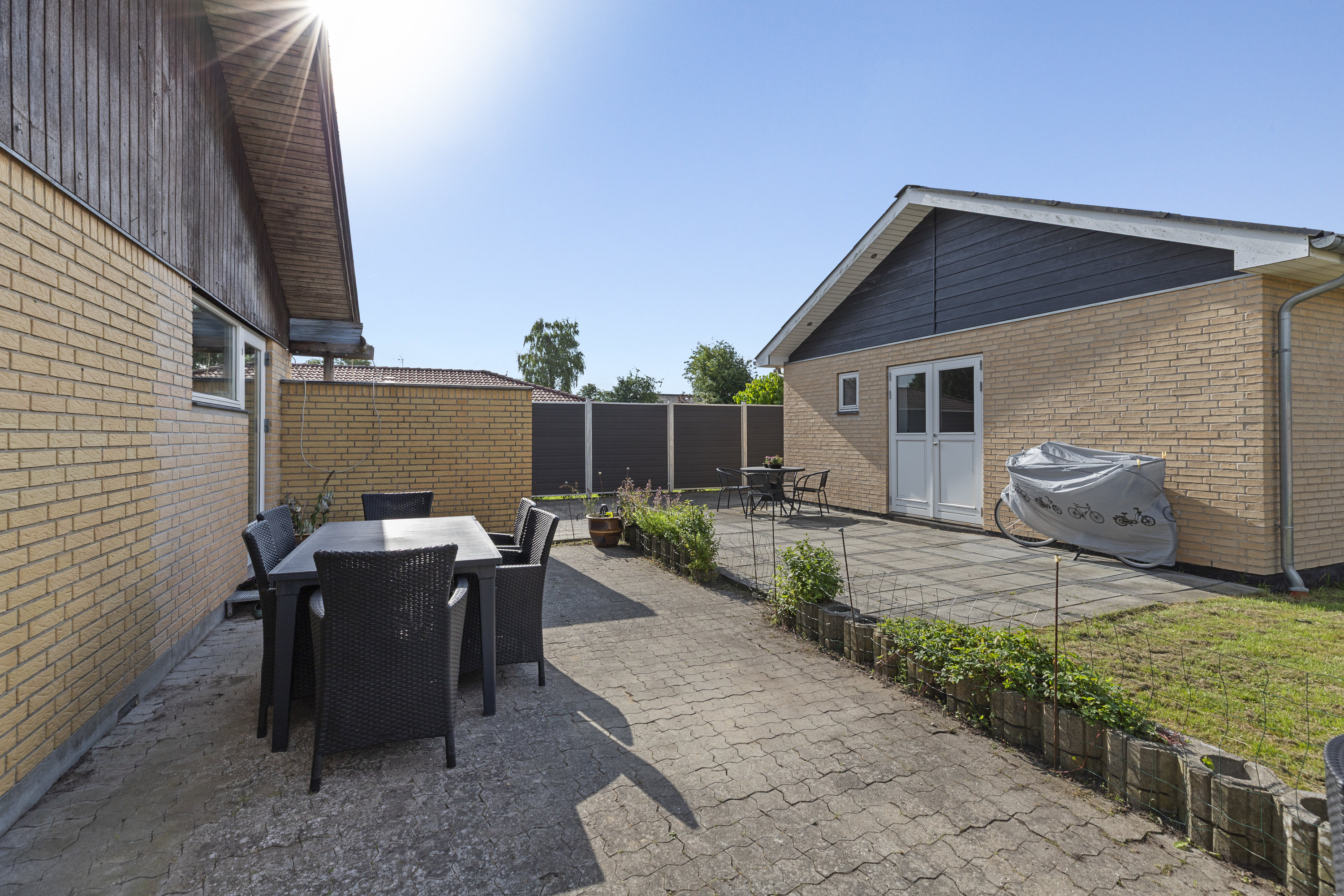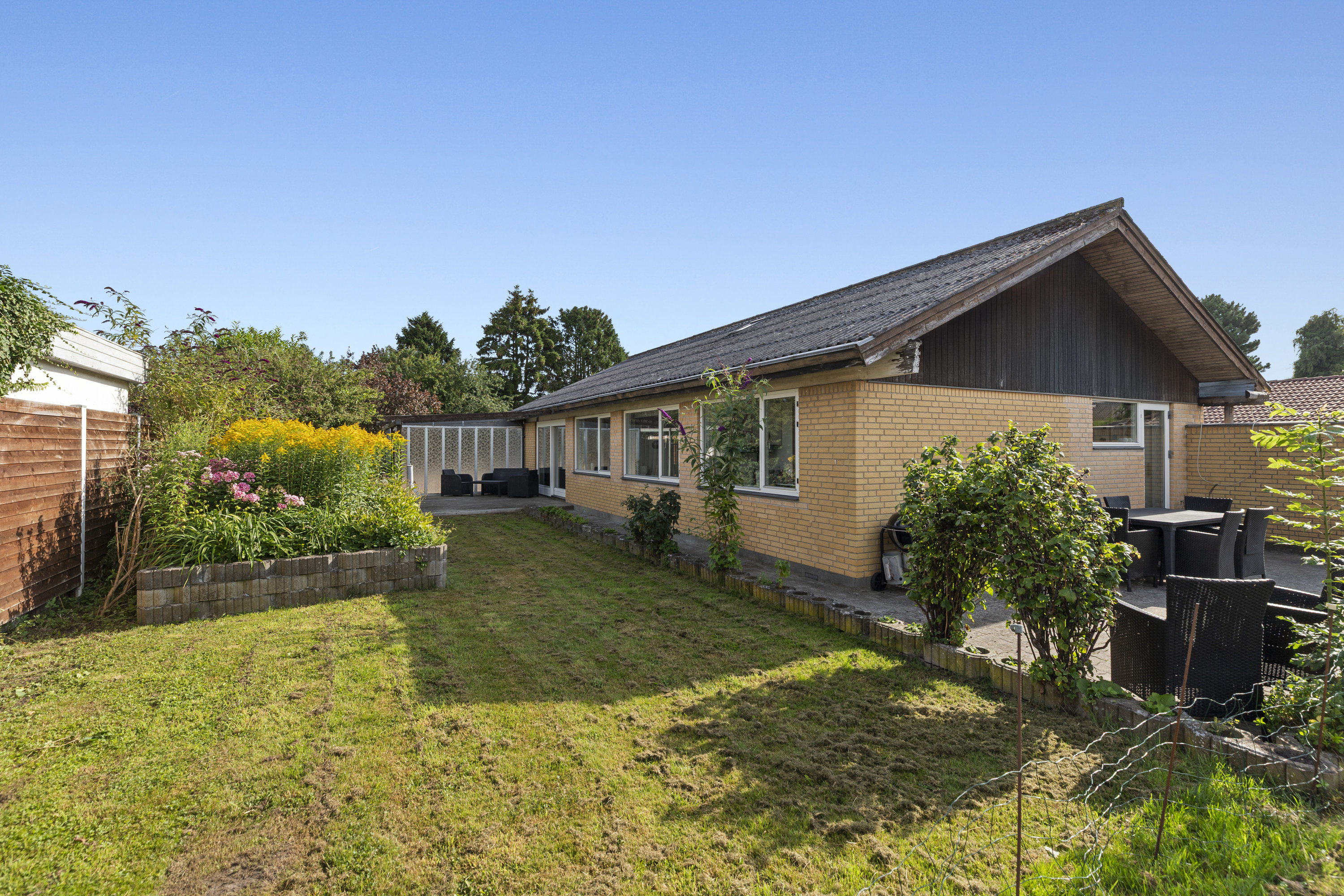 Ved første blik møder du et velholdt og indbydende parcelhus – men bag facaden gemmer sig langt mere. I alt 166 kvadratmeter fordelt på boligen og et helt særligt muret, fuldisoleret anneks på 56 kvadratmeter og byder på både loft til kip, gulvvarme, sildebensgulv og eget toilet – en ekstra bolig i sig selv, klar til gæster, arbejde eller noget helt tredje. De to bygninger spejler hinanden i udtryk og kan med få, enkle greb bygges sammen til én stor helhed.