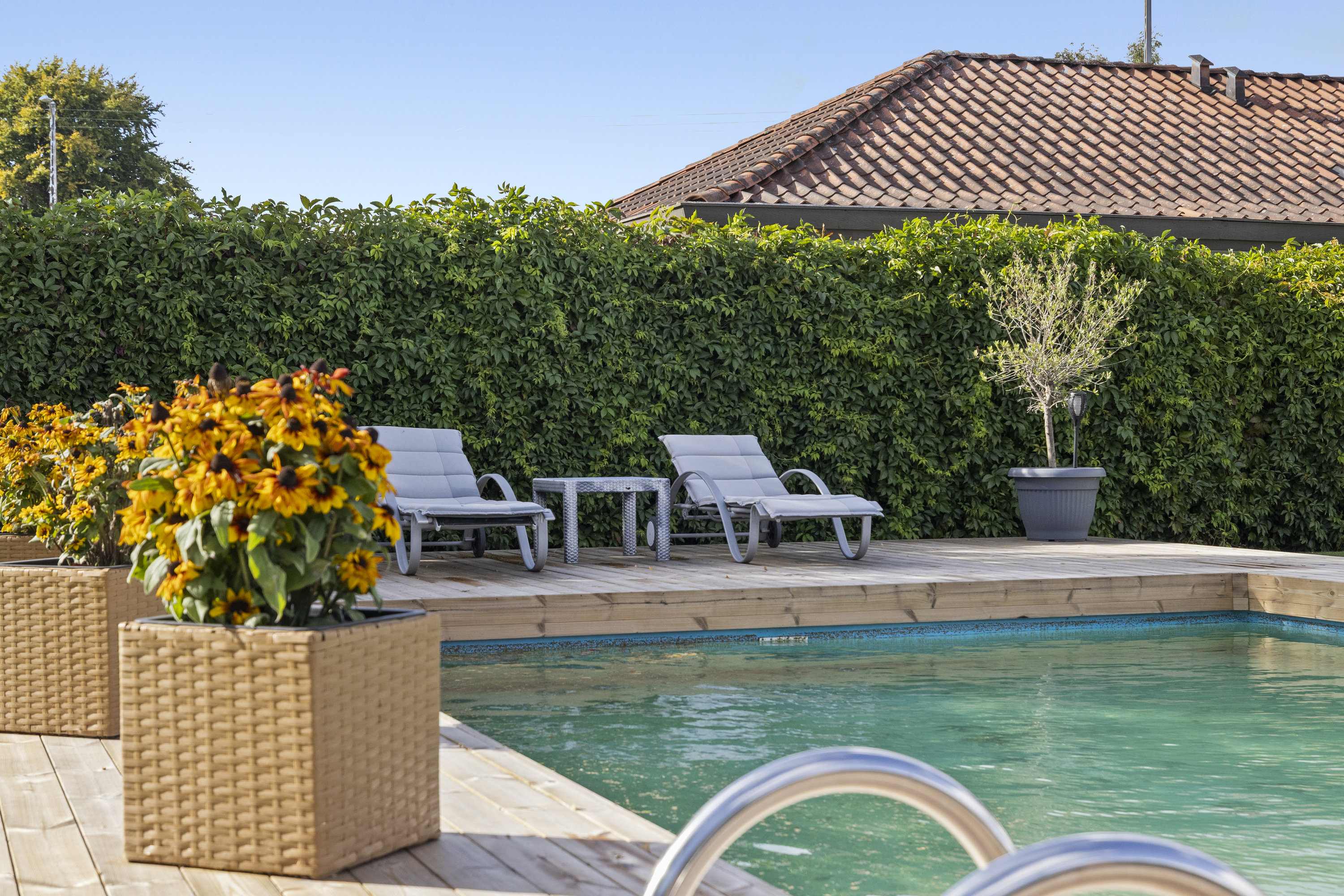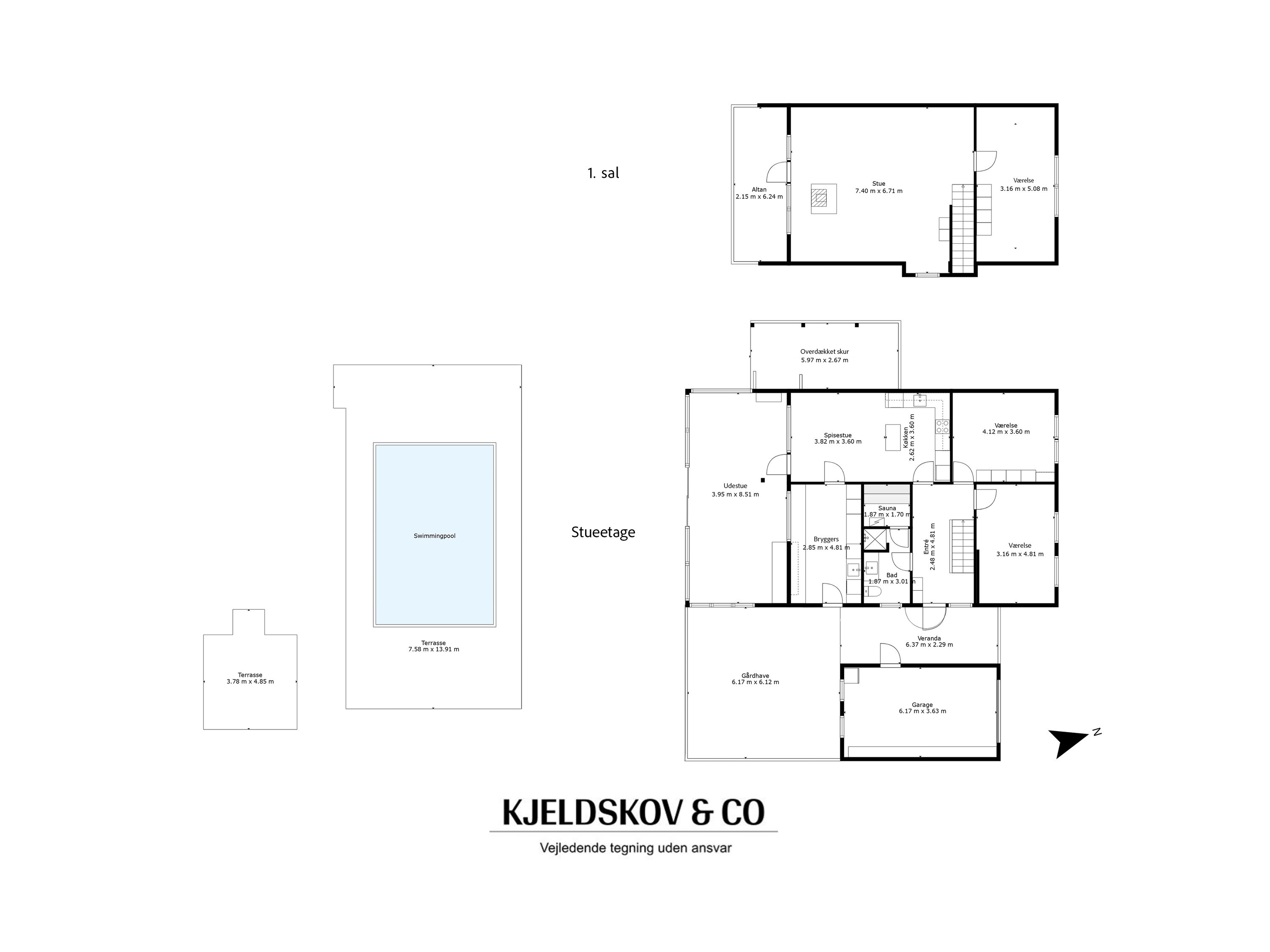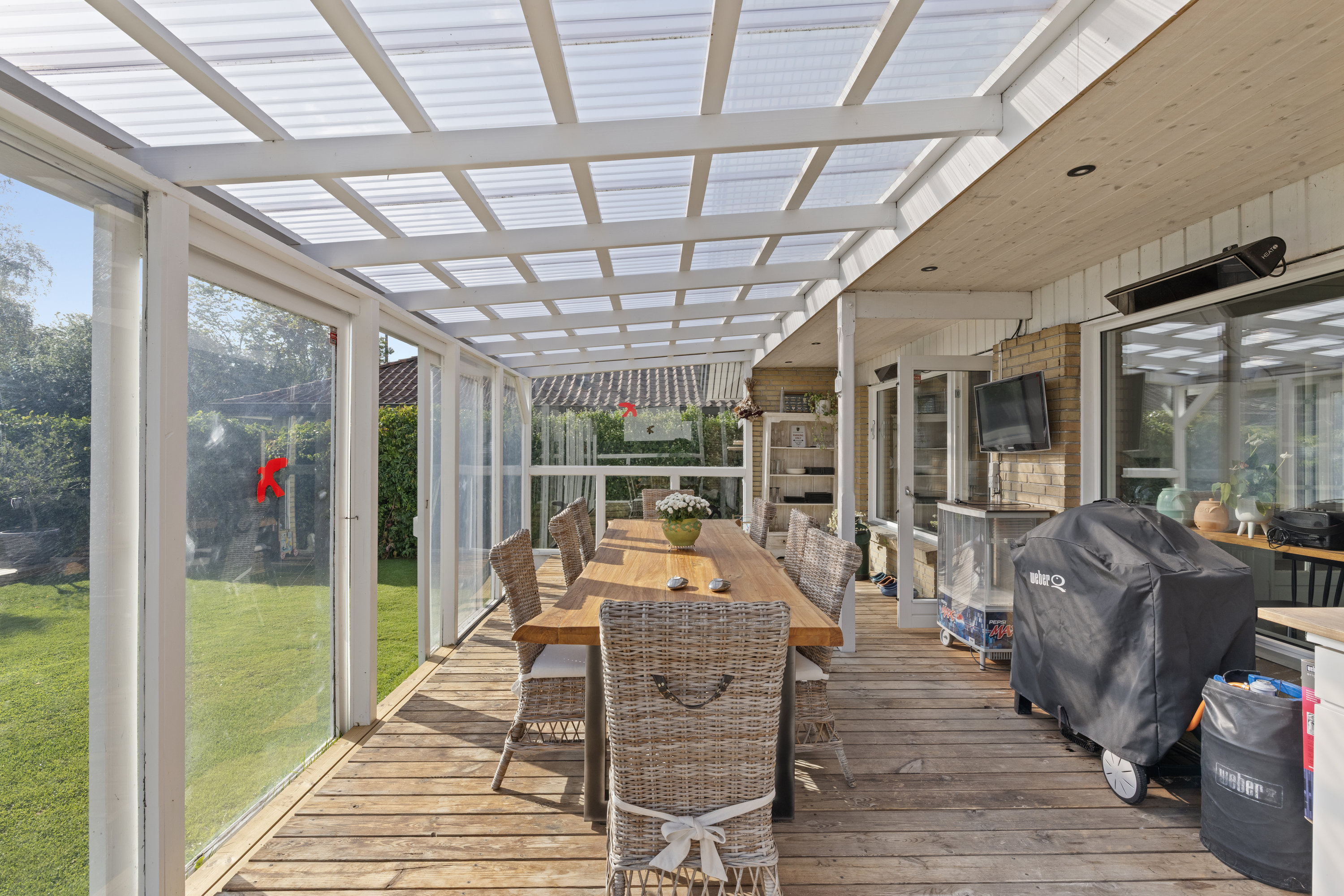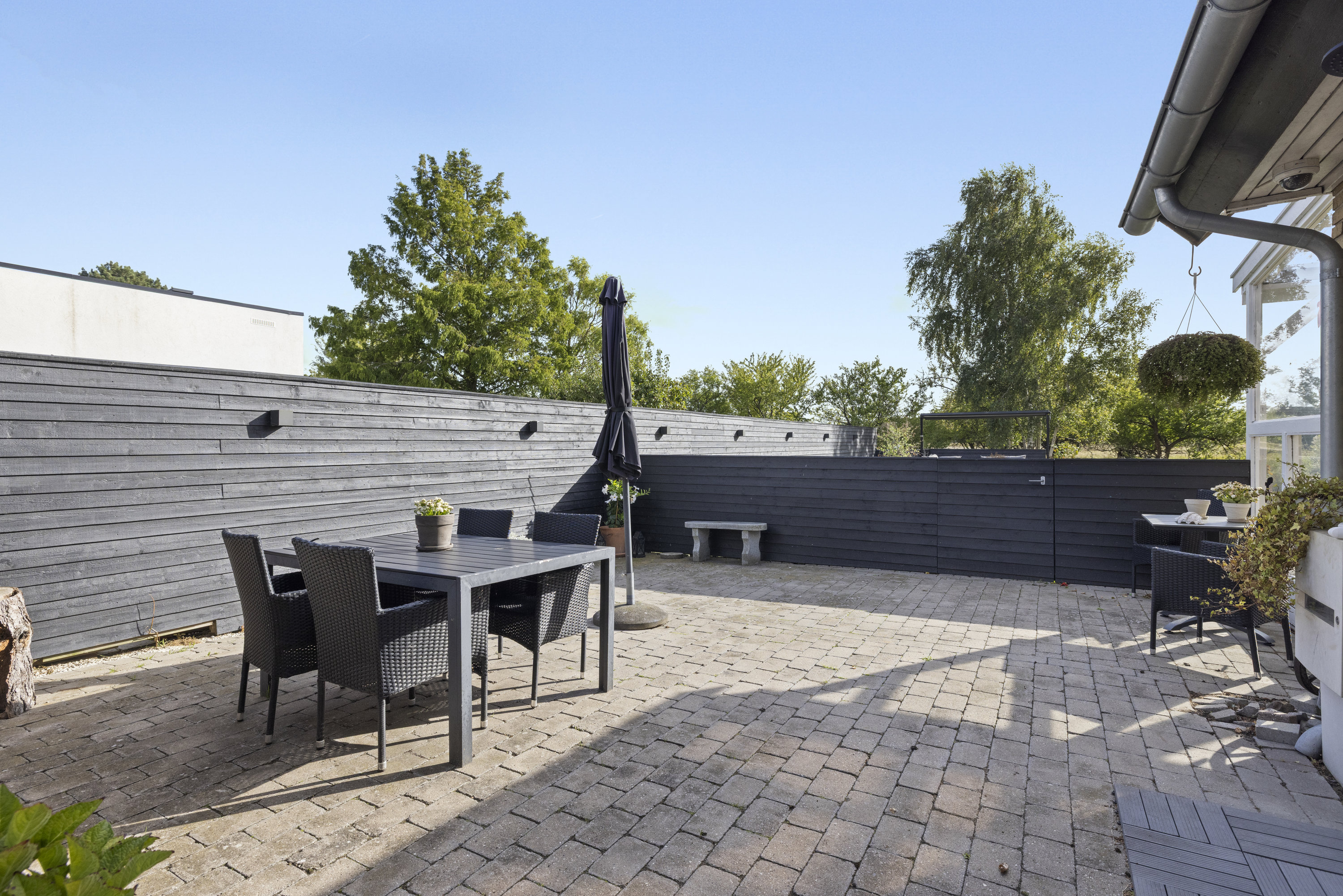 Haven er åben mod engområdet, så naturen føles som en del af det hele – herfra flyder blikket frit over vidderne, mens lyset skifter i takt med årstiderne. Omkring poolen breder en ny træterrasse sig ud med plads til liggestole, lounge og parasoller – her føles sommerdagene som sydpå, når solen står højt, og glasset dugger af kold vin. Når morgensolen rammer, er en frisk dukkert i poolen den perfekte begyndelse på dagen. I hjørnet af haven finder du endnu en træterrasse, placeret direkte mod engen, hvor roen er særlig nærværende. Den store fliseterrasse danner rammen om grill og lange aftener, mens udendørsbruseren giver fornemmelsen af ferie efter en dukkert. Udestuen bliver et ekstra opholdsrum tæt på vandet, og på græsplænen er der plads til boldspil og barfodede skridt. Den store fliseterrasse er perfekt til grill og lange aftener, hvor duften af kul og krydderurter fylder luften, mens udendørsbruseren giver fornemmelsen af ferie efter et dyp i vandet. Udestuen bliver et ekstra leverum, hvor udsigten til pool, have og eng altid er nær Garagen holder styr på bilen og alt det praktiske. En rolig gåtur langs engområdet, og du når stranden, mærker havets salte brise og stemningen i Greve Marina med det hyggelige havneliv.