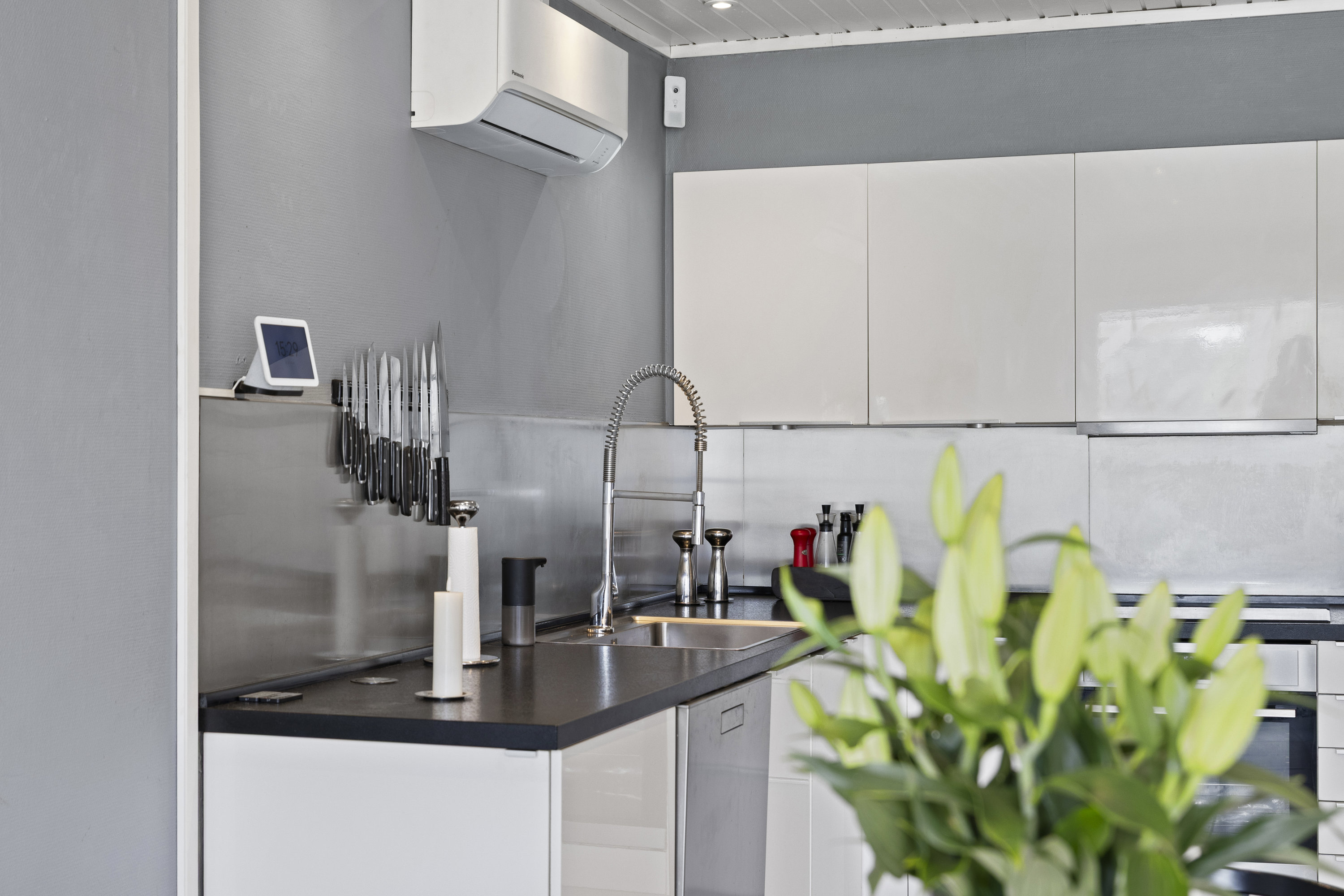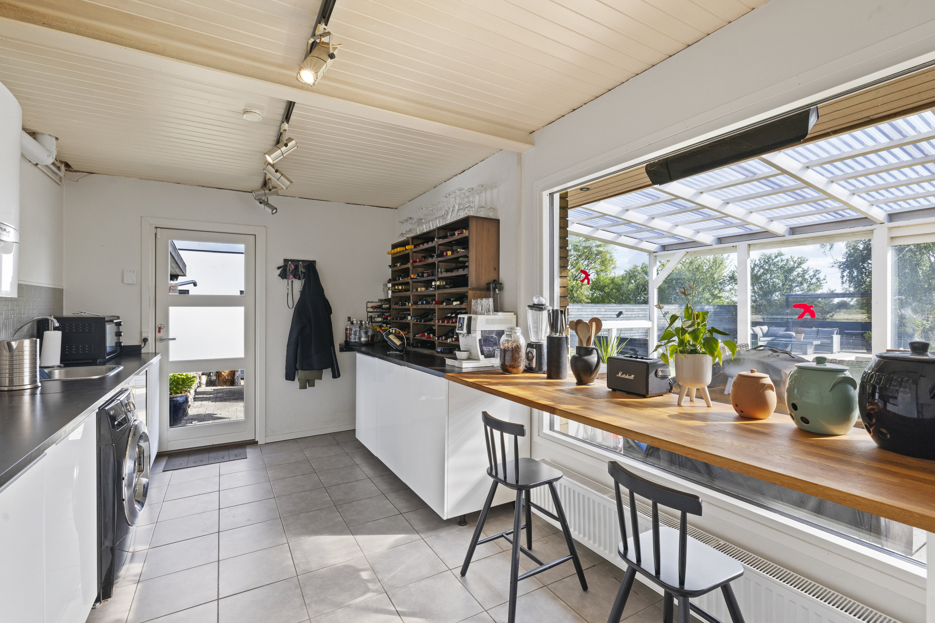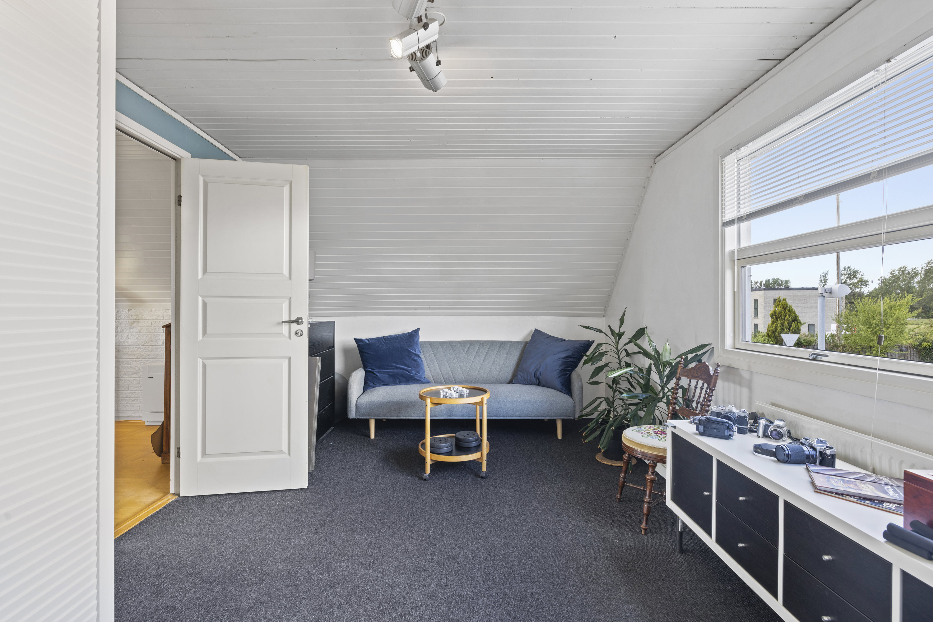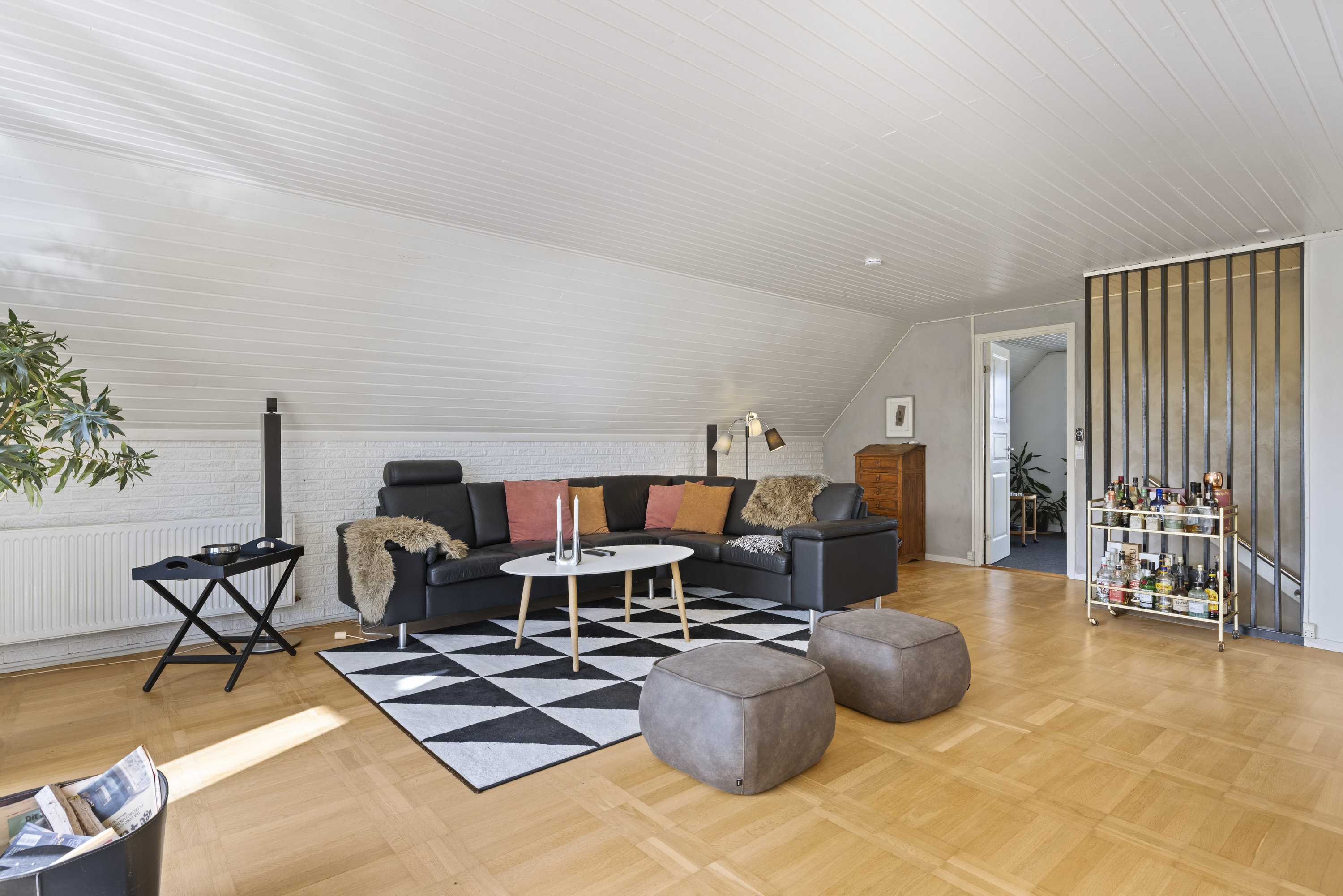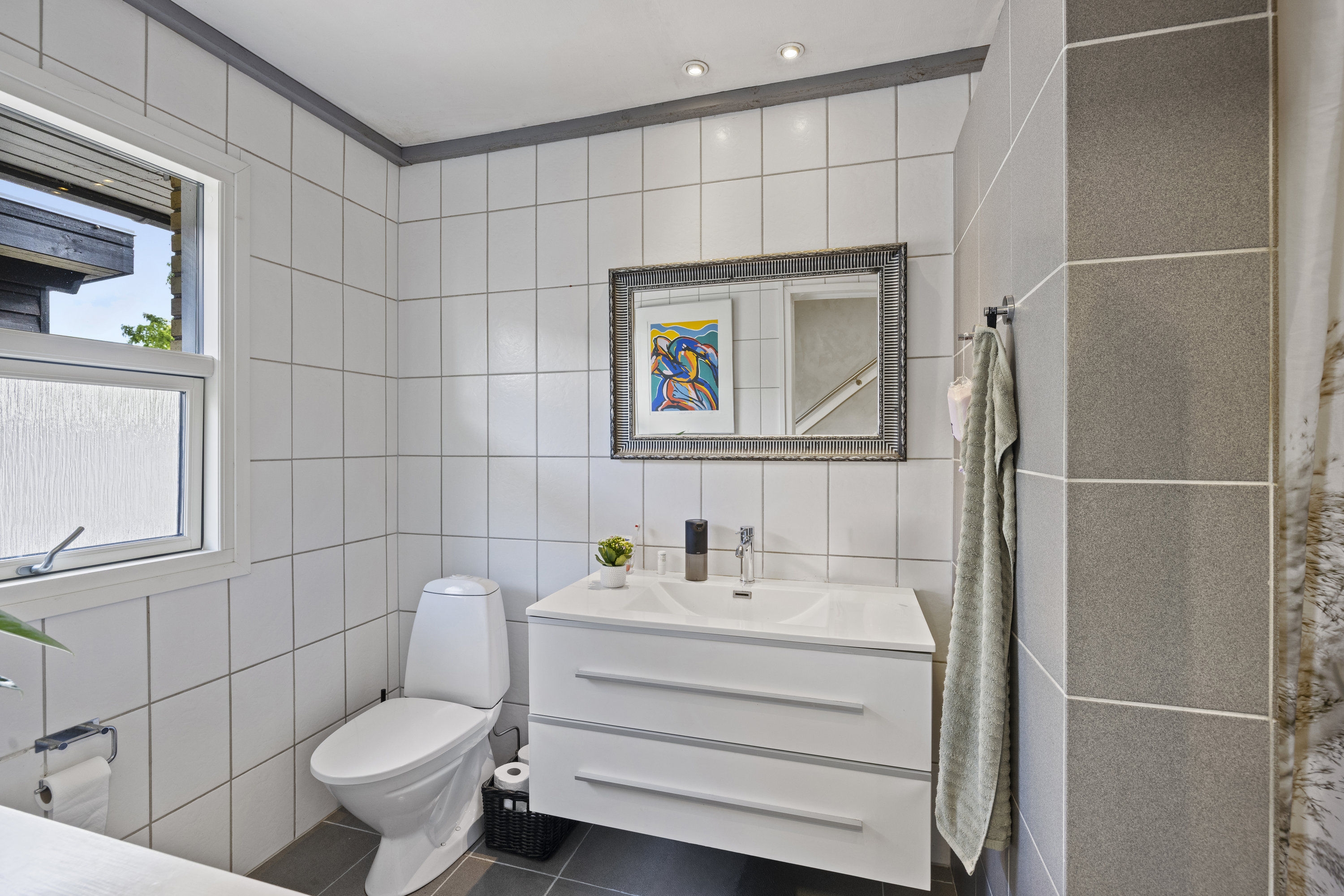 Nye vinduer, døre og tagrender - en velholdt helhed danner rammen om boligen, hvor der er plads til hele familien, små, store og dem lidt midt i mellem. Køkken/alrummet er lyst og enkelt med hvide elementer og lyse klinker, et rum hvor hverdagen samler sig om madlavning og måltider omkring spisebordet. Store vinduespartier åbner mod udestuen, så både lys og kig til haven altid er nærværende. Badeværelset er indrettet til velvære med lyse fliser og bruseniche – saunaen, ja den er et perifert fristed til ro og afslapning, når dagen går på hæld. Tre gode værelser giver plads til leg, søvn, lektier eller arbejde, og er behovet et fjerde kan det let indfries. På første sal venter en stor opholdsstue, hvor lyset strømmer ind fra både karnap og de store vinduer mod balkonen. Brændeovnen spreder sin varme, og dørene åbner til det fri, hvor du kan træde ud og lade udsigten folde sig ud i al sin betagende form.