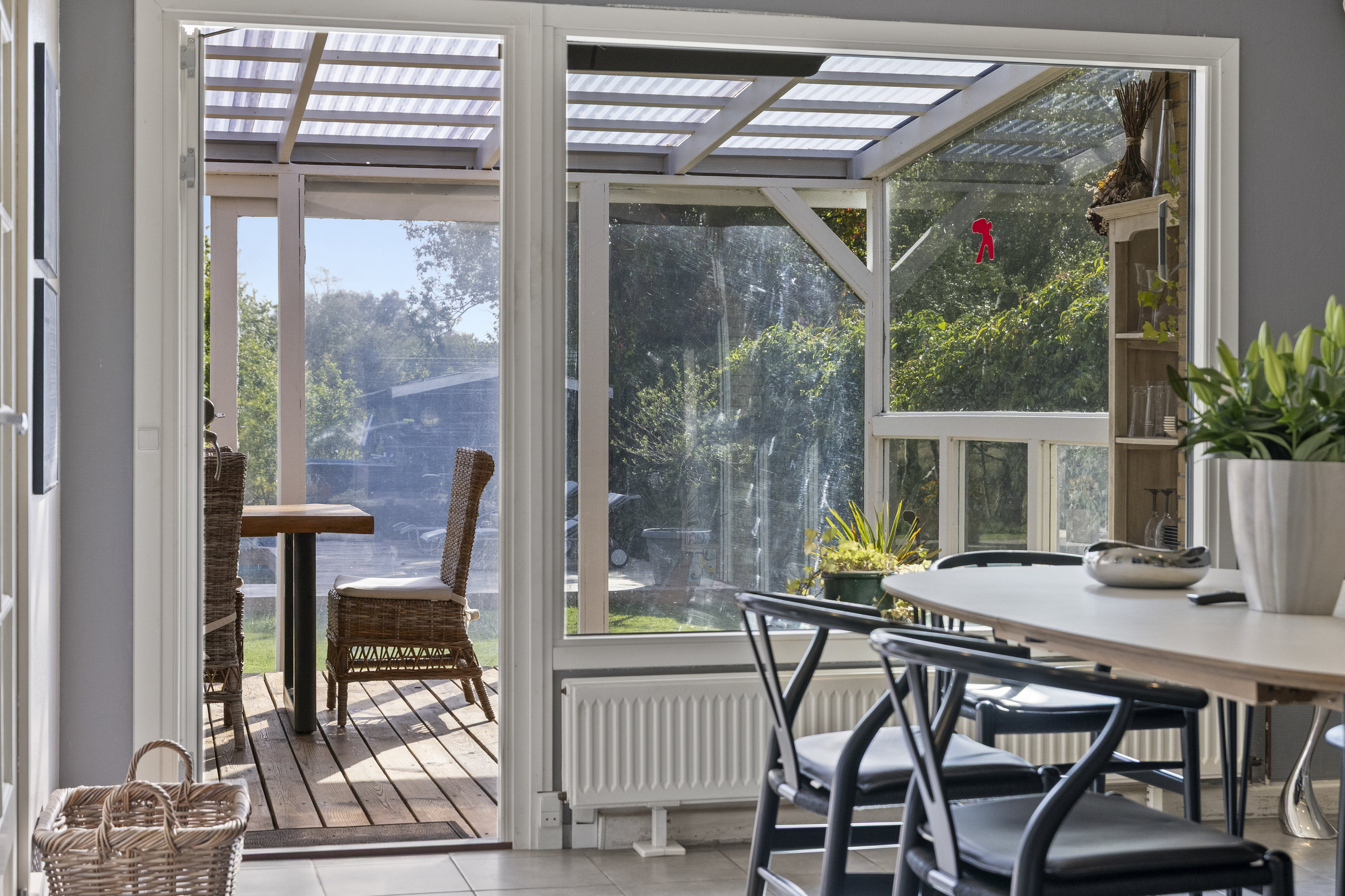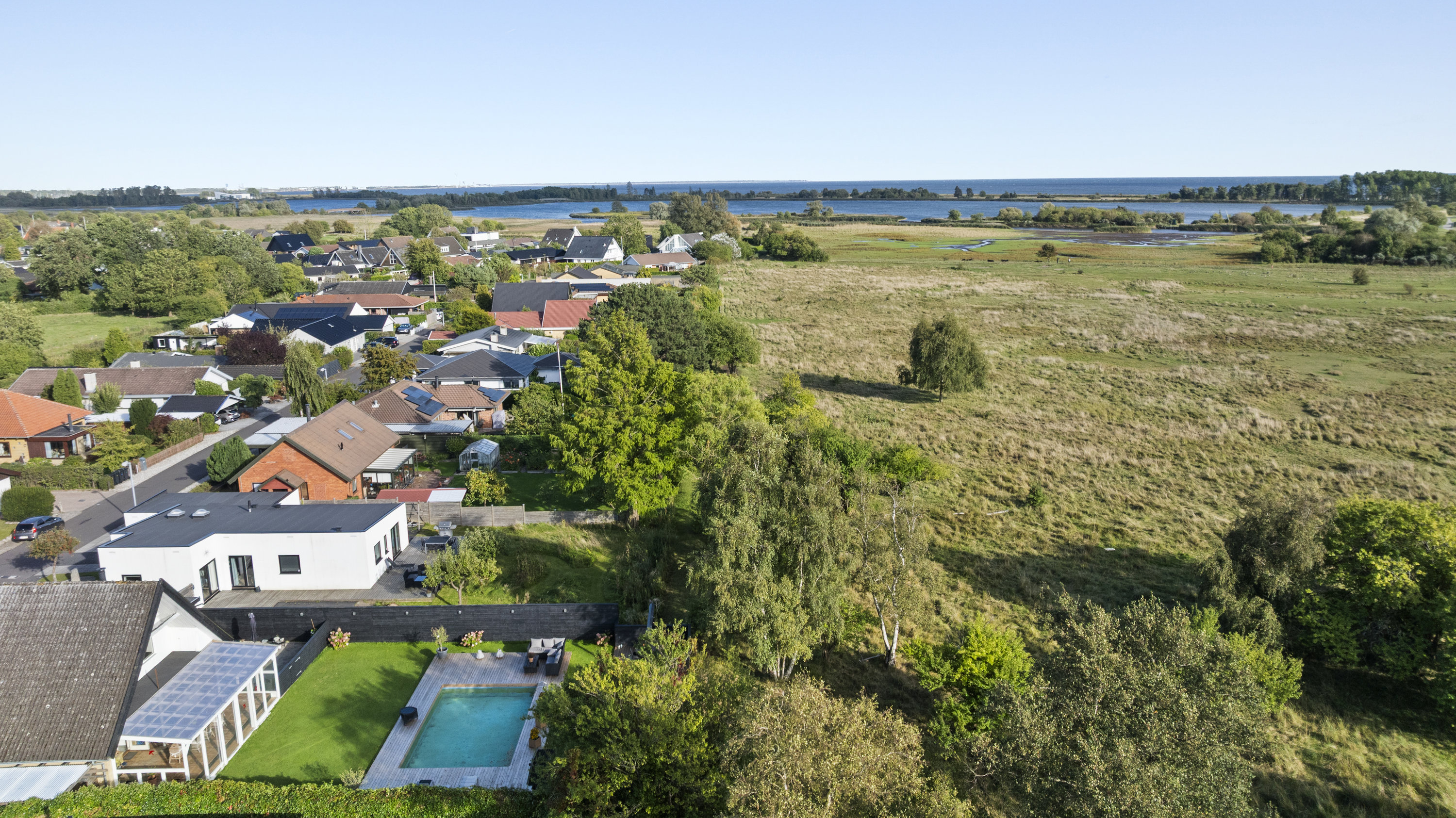 Ikke bare tæt ved, men helt ud til det naturskønne fredede engområde ligger denne bolig, her hvor udsigten aldrig slipper sit greb. Det er et syn, der bliver ved med at give – fra køerne, der fredeligt græsser forår, sommer og efterår, til lyset, der skifter over engens åbne vidder og maler horisonten med årstidernes farver. Et billede, så betagende, at man næsten må knibe sig i armen.