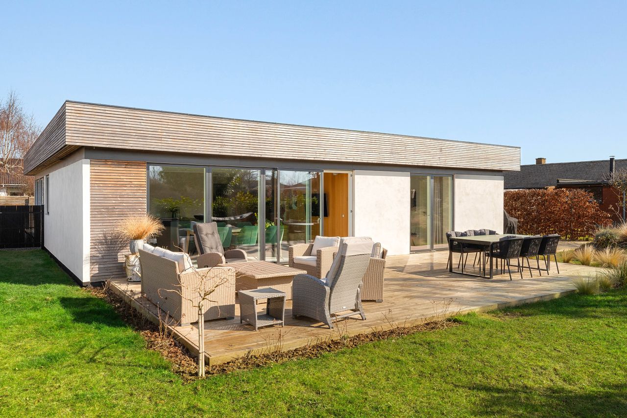 Den nye 80 kvm. store træterrasse breder sig på to sider af huset og skaber et skønt uderum til både afslapning og samvær. Her leves livet barfodet i morgensolen, omgivet af loungemøbler, liggestole og duften fra grillen. Haven er anlagt med højbede, en blød græsplæne til leg og et smukt krogede træ, der tilfører stemning. Forhaven rummer både garage og parkering, og nabolaget er fyldt med liv – her bor både børn og voksne side om side. Alt er tæt på, fra Uglegårdsskolen og daginstitutioner til Solrød Centerets butikker og S-toget, der bringer dig videre med et øjebliks lethed.