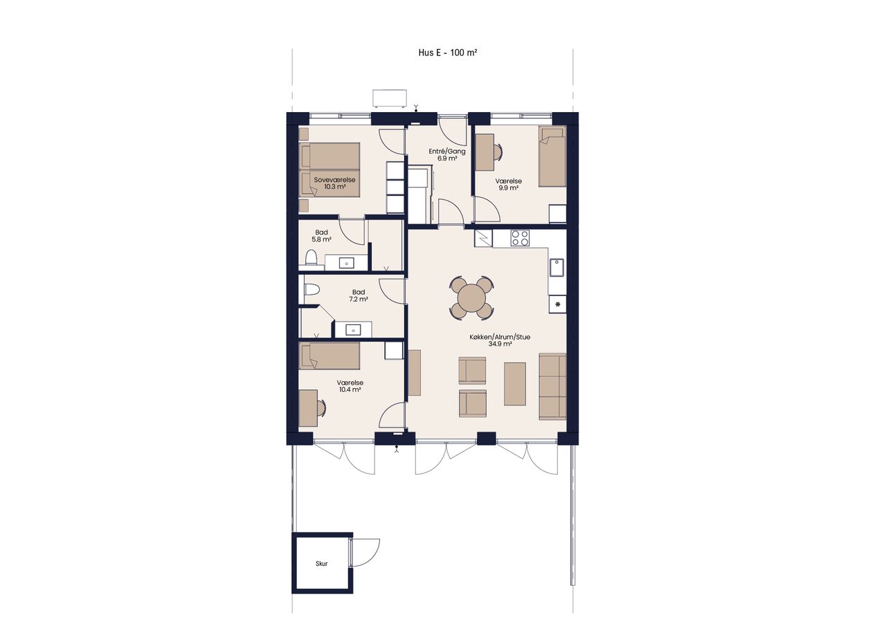 Lige der, hvor byens liv møder havets rolige rytme, opføres et ekstravagant boligprojekt - moderne luksus med gennemtænkte detaljer. 7 eksklusive 1 plans rækkehuse, 6 stilfulde lejligheder og 2 erhvervslejemål. Mulighed for personlige tilvalg, så dit nye hjem bliver skræddersyet til dine drømme.  Du får det bedste af to verdener - lige overfor Solrød Centeret og et stenkast fra stranden. Start dagen med en morgendukkert i havet, shop i byens mange butikker og slut dagen af med roen på din private terrasse/altan.  Her er der tænkt på alt – fra den private parkeringsplads, hvor bilen kan stå klar til næste tur, til det praktiske redskabsrum, der kan rumme alt fra cykler til haveredskaber. Eurodan Huse står bag boligerne, hvor inventar fra Svanekøkken og trægulve fra Timbermann giver et gennemført og eksklusivt udtryk. Gulvvarme overalt, varmepumpe og ventilationssystem sikrer en behagelig og tidssvarende komfort. Stuelejlighederne på 110 kvm har private, solrige haver, der inviterer til afslapning og udeliv året rundt. 1.-salslejlighederne på 91 og 100 kvm imponerer med to altaner og franske altan, der åbner op mod himlen - adgang via elevator gør hverdagen ekstra bekvem. Lyset strømmer ind gennem de store vinduespartier. To stilfulde badeværelser – det ene i direkte forlængelse af soveværelset for ekstra komfort og privatliv. Opholdsrummet er nøje designet, som ét samlet miljø med køkken, alrum og stue – et sted for madlavning, samtaler og lange aftener. Her er plads til hverdagsliv og gæster, til ro og liv. Rækkehusene på 93-100 kvm er skabt med tanke om et lyst og luksuriøst liv.  Store vinduespartier lader dagslyset fylde alle rummene. Den sydvendte have indbyder til lange dage i solen med afslapning og hygge.  To flotte badeværelser, hvoraf det ene har direkte adgang fra soveværelset. Det åbne køkken, alrum og opholdsstue er tænkt som ét sammenhængende rum til madlavning, samtaler og vin på bordet. Et sted hvor der leves, gæster bliver hængende, og aftenerne får lov at trække ud i roligt tempo. Mavefornemmelsen er god her – alt er nyt, og både byliv og strandens ro ligger helt tæt på.