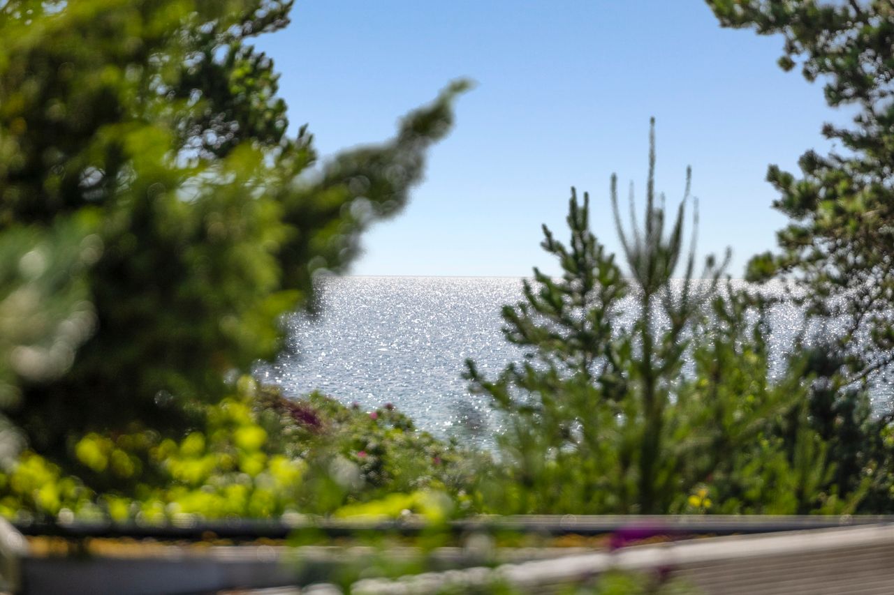 Gammel Køgevejskvarteret har sine rødder i begyndelsen af 1900-tallet, hvor bølgerne, lyngen og den åbne kystlinje tiltrak sommergæster fra København og Roskilde. Det, der engang var små, enkle sommerhuse, har udviklet sig til et eftertragtet kvarter – stadig med stranden og havet som omdrejningspunkt. Her lever historien videre i de kuperede naturgrunde, i randbeplantningen og i lyset, der falder blødt gennem gamle træer. Grunden her er ingen undtagelse. Den er smukt indrammet af lavendelbede, store træer og oprindelig beplantning, som giver følelsen af en privat strandplantage – ugenert og fuld af atmosfære. Den østvendte terrasse fanger solopgangen og udsigten til lyngen, mens eftermiddagene leves under den sydvestvendte overdækning med havgus i luften og lyden af bølgeskvulp i baggrunden. Barfodet gennem græsset og videre ned mod vandet – her bygger man sandslotte med de små, padler ud i morgensolen og tager en dukkert, når dagen går på hæld.
