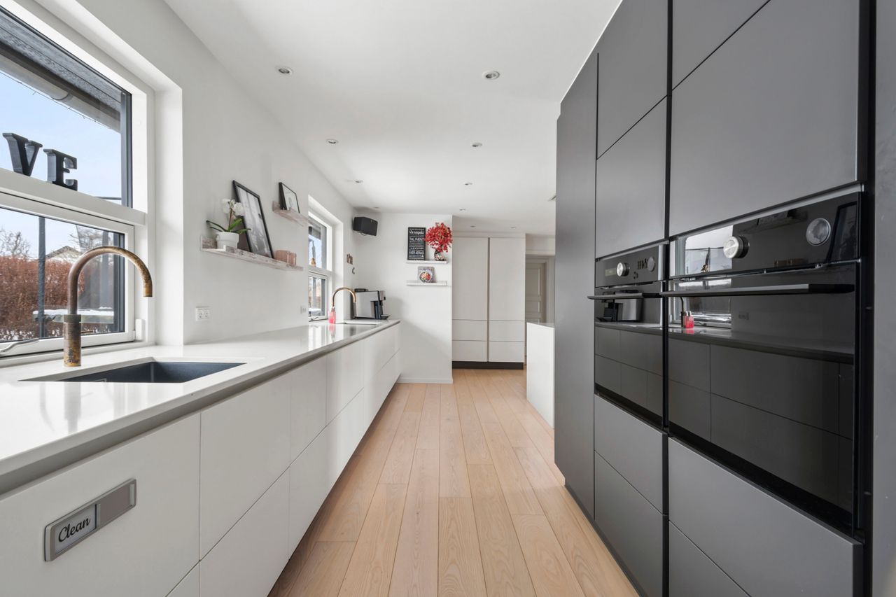 Køkkenet er et stilrent Invita-samtalekøkken med stor fritstående ø, siddepladser og plads til snak, grin og madlavning. To vaske, Quooker til både stille og brusende vand og vinkøleskab sætter prikken over i’et. Dobbelte franske døre fører til spise- og sofastue i ét, hvor brændeovnen samler rummet, og hvor der er udgang både til udestue og terrasse. To badeværelser giver komfort i hverdagen – det ene med dobbelt vask, bruseniche og hjørnebadekar – ideelt til et roligt afslappende øjeblik. Boligen rummer to gode værelser i stueplan og på førstesalen yderligere to værelser, heraf ét med walk-in-closet, et depot/hjemmekontor, badeværelse og endnu en stue eller alrum – oplagt som børnenes egen base.