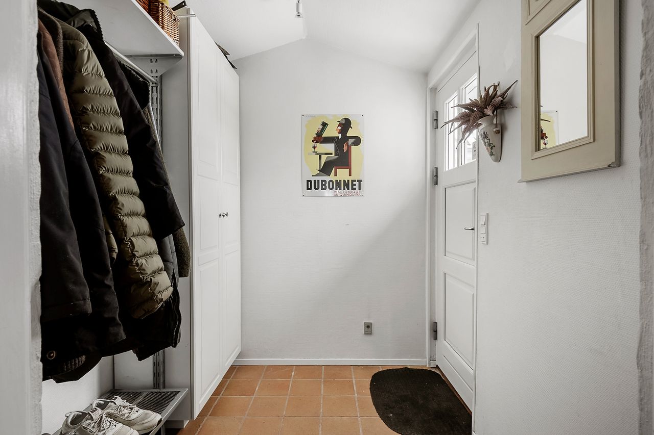 To stuer ligger en suite, hvor den ene åbner sig med karnap mod dagslys. Her er plads til både sofahygge og lange middage, når stearinlysene tændes, og glassene fyldes. Spisekøkkenet er lyst og rummeligt med god plads til familien og udstyret med Smeg-induktionskomfur med to ovne – et køkken for dem, der holder af at lave mad. I stueplan findes desuden et gæstetoilet og et dejligt badeværelse med New Yorker-væg i brusenichen. På førstesalen løftes stemningen med lofter til kip og frie hanebånd. En stor, lys repos danner en naturlig overgang mellem rummene og giver plads til hjemmekontor, alrum eller en stille krog. To værelser ligger heroppe, og fra soveværelset er der udgang til altanen, hvor morgensolen kan nydes i ro sammen med kaffen. Boligen er opdateret med varmepumpe og hulmursisolering.